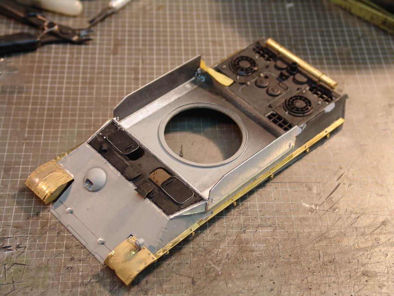 А что за конструкция люков механника - никогда такую не встречал. Это Вы сами придумали или где то нашли информацию? А снаряды не тяжелые будут для унитарного заряжания? На Ягдтигре раздельное было.