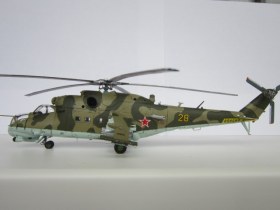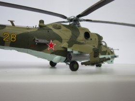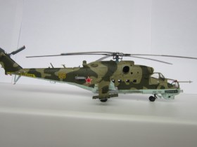 Приветствую.Представляю модель еще одного ветерана,ОВП "Орешково".Вариант вертолета с боковой двухствольной пушкой. 28й,борт с копиталки.Собран совсеми доработками,проводка на НВ,подточены шасси,на шасси исполнина гидравлика,на блоках отстрела тепловых ловушек,добавлена проводка.Пушка изготовлена собственноручно.Окраска, акрил" звезда".