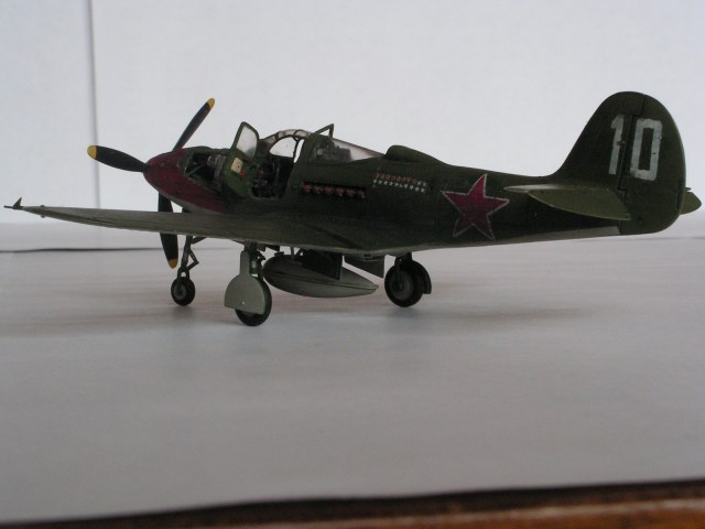 Теперь об исторической привязке. Самолет P-39Q (наверное Q-1) пилотировал капитан Павел Кутахов 19-й ГИАП, 1943 год. Декали были только на один борт, хотя на оригинале (согласно фото) должны быть на оба. Но эту ошибку уже не исправить. И еще не сделал рамочный откидной прицел в кабине- но это уже по недогляду.