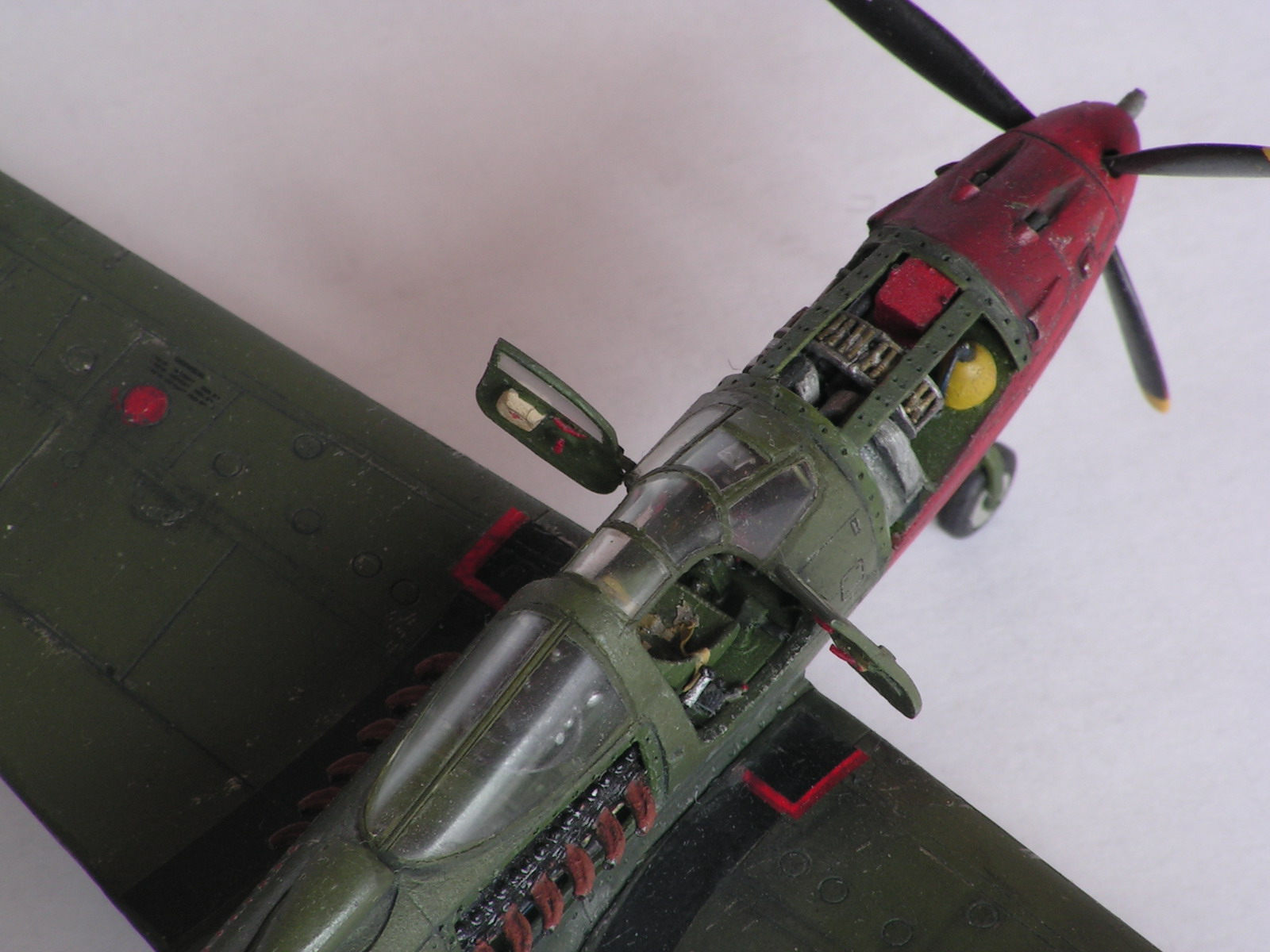 Модель отличная. Про недостатки и достоинства написали выше. Единственное же что не понравилось - открытая левая дверь. Насколько я помню из описания - в СССР на ней монтировалось радиооборудование , посему она не открывалась . Только сбрасывалась при покидании.