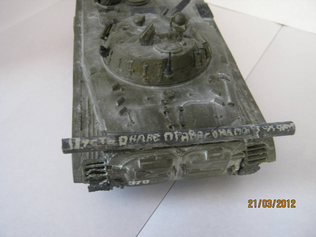 Добрый день.Позвольте представить мою модель горемыку.Купил её самую первую поэтому косяков не пересчитать.Камо делал от фонаря и тогда мне показалось что классно смотриться,но меня обломали.Поставил на полку. Она пылилась мне стало жалко.Переделал.Красил акрилом от Звезды.Танкист от фирмы TANK.Ну вот и все. Прошу отнестись снесходительно.Жду конструктивную критику и пожелания.