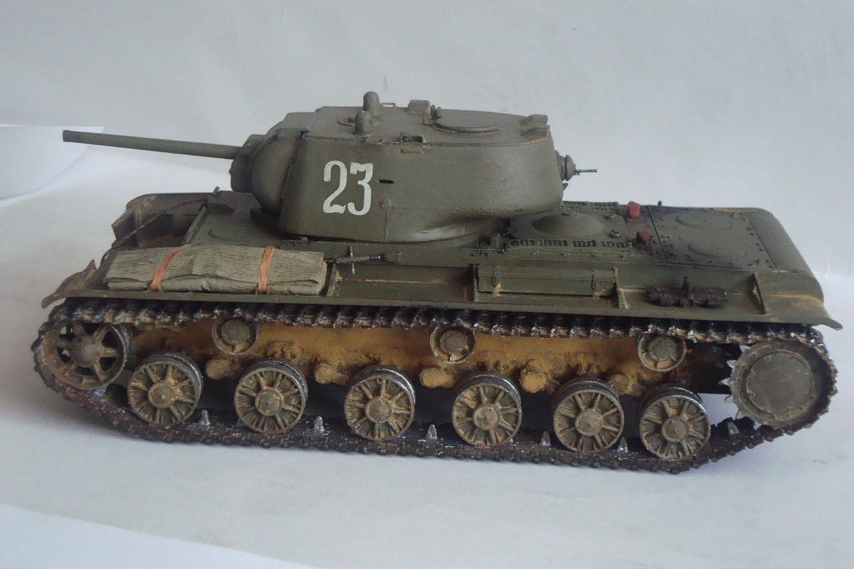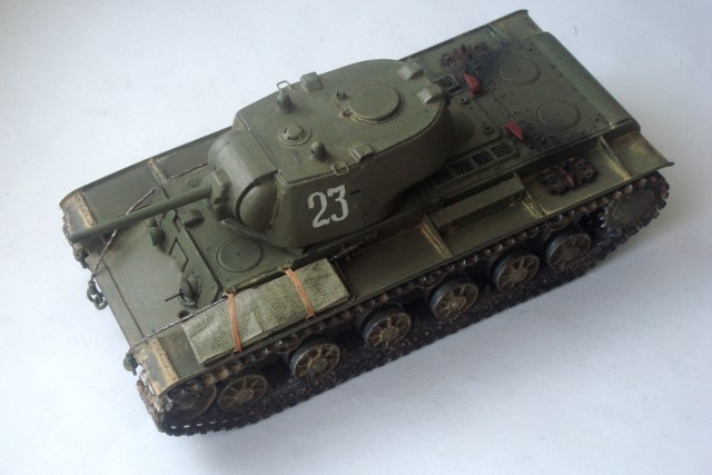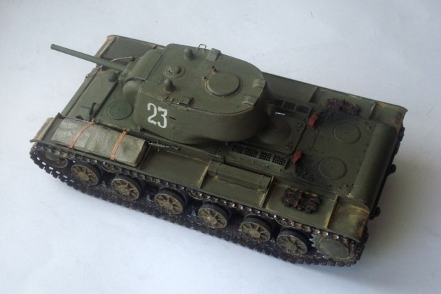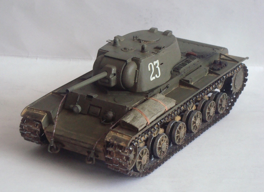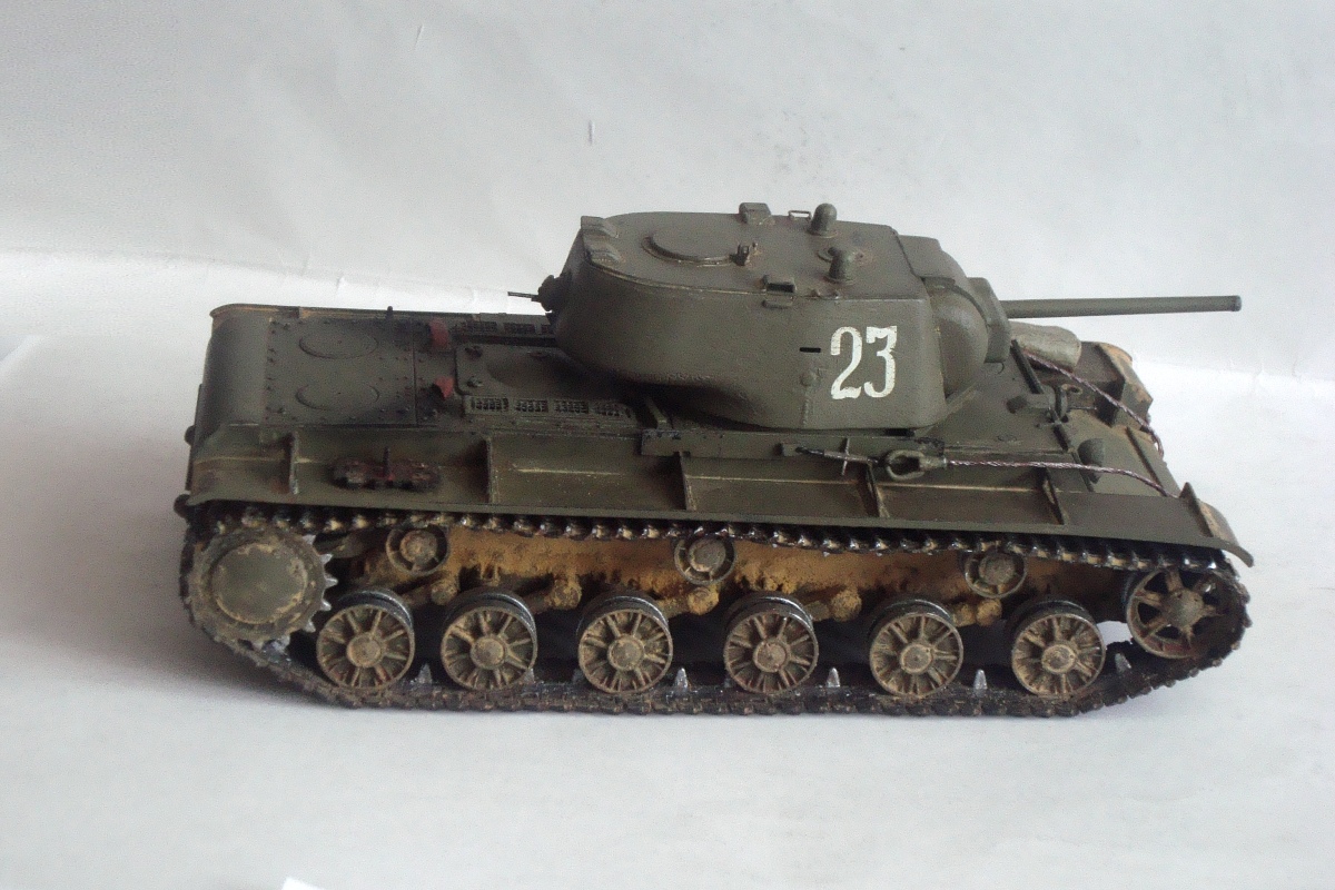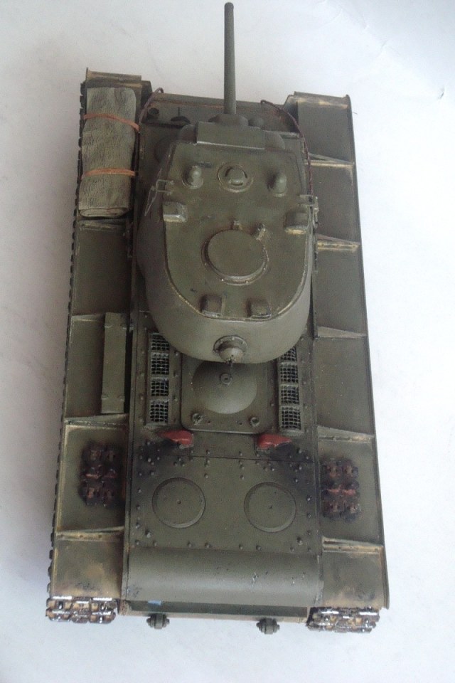 Основные косяки: сетка МТО крупная(мелче не нашел), траки на танки кв поздних серий с гребнями через один. Ну и не понравилось как выполнил загрязнение. На след моделях исправлюсь