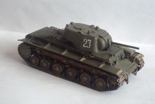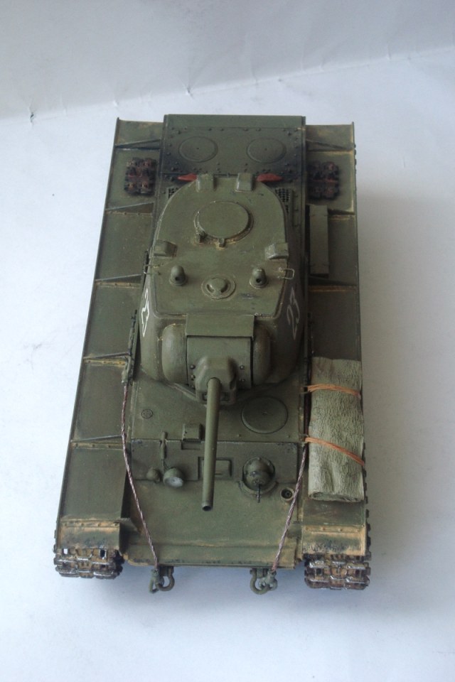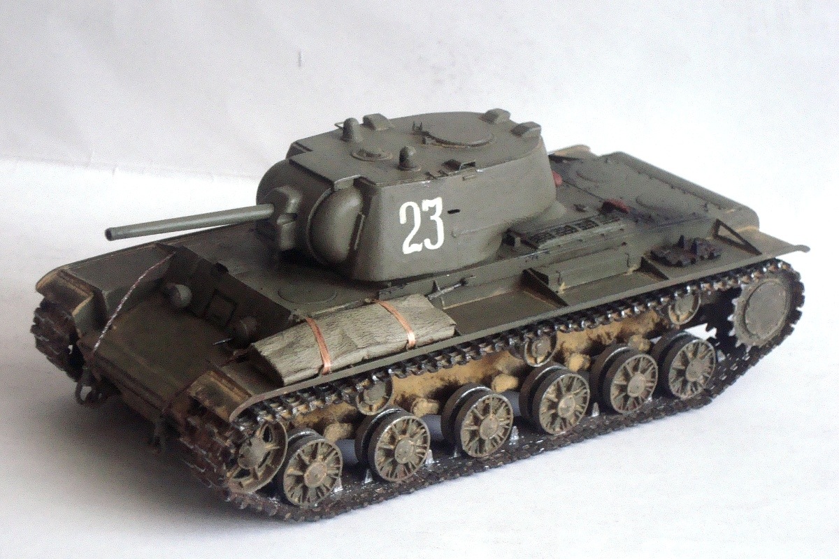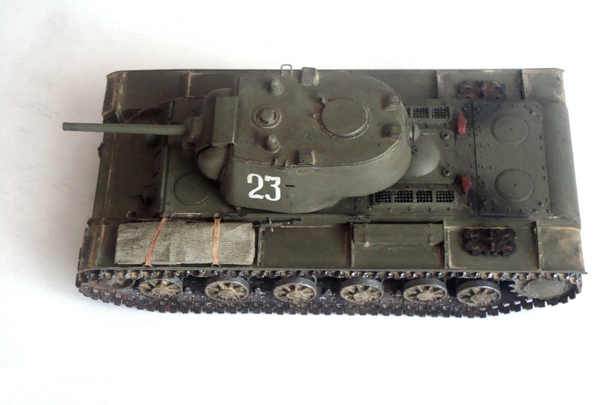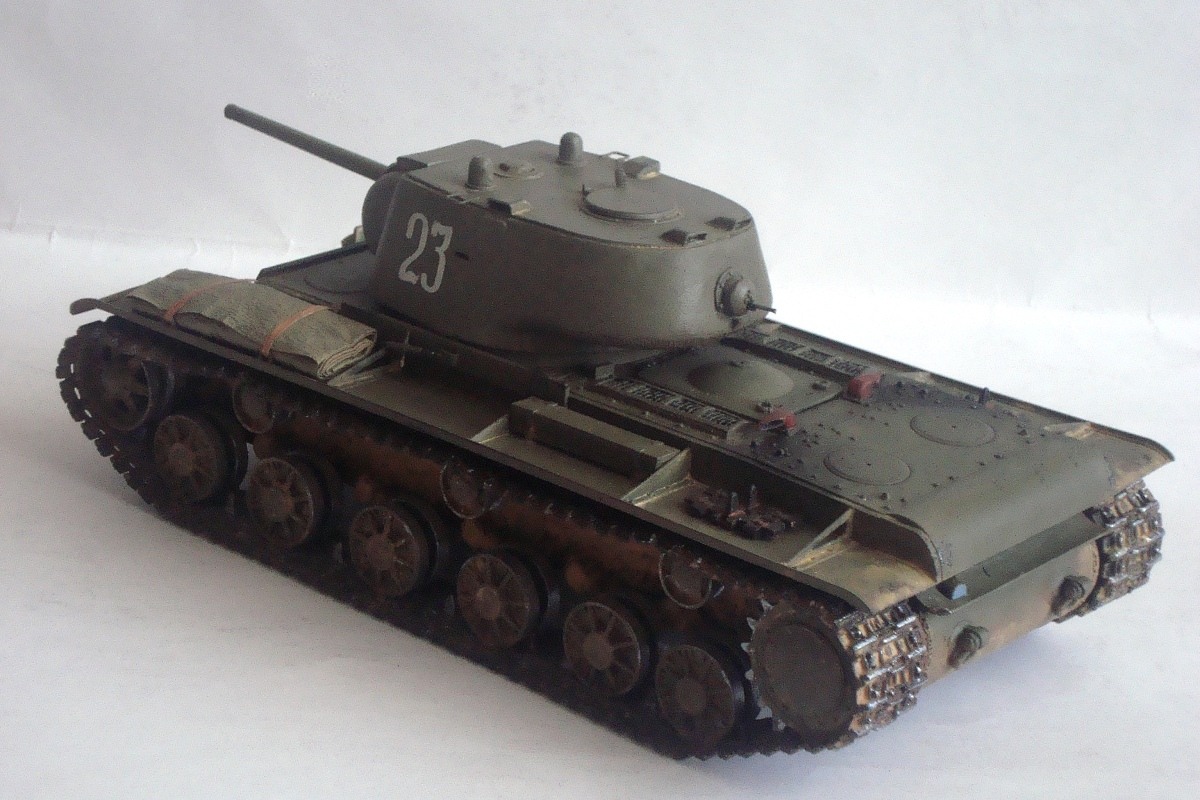 Основные косяки: сетка МТО крупная(мелче не нашел), траки на танки кв поздних серий с гребнями через один. Ну и не понравилось как выполнил загрязнение. На след моделях исправлюсь