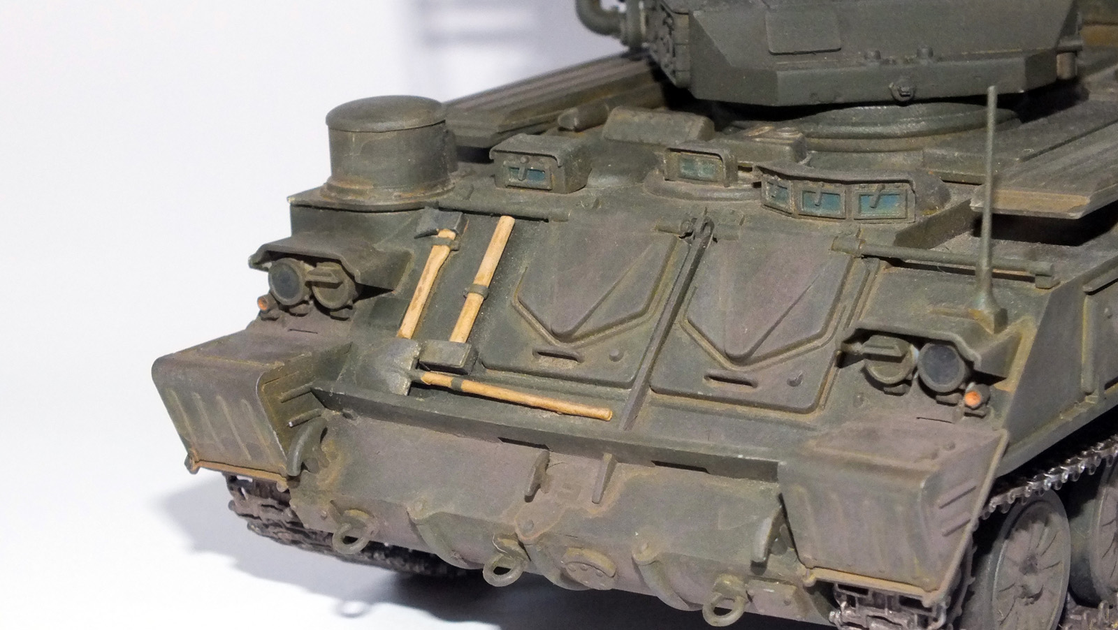 Окрашивал Тамией, ржавчину наводил Акановским тонировочным пигментом и звездовским акрилом. Пыль-миговский сухой пигмент.