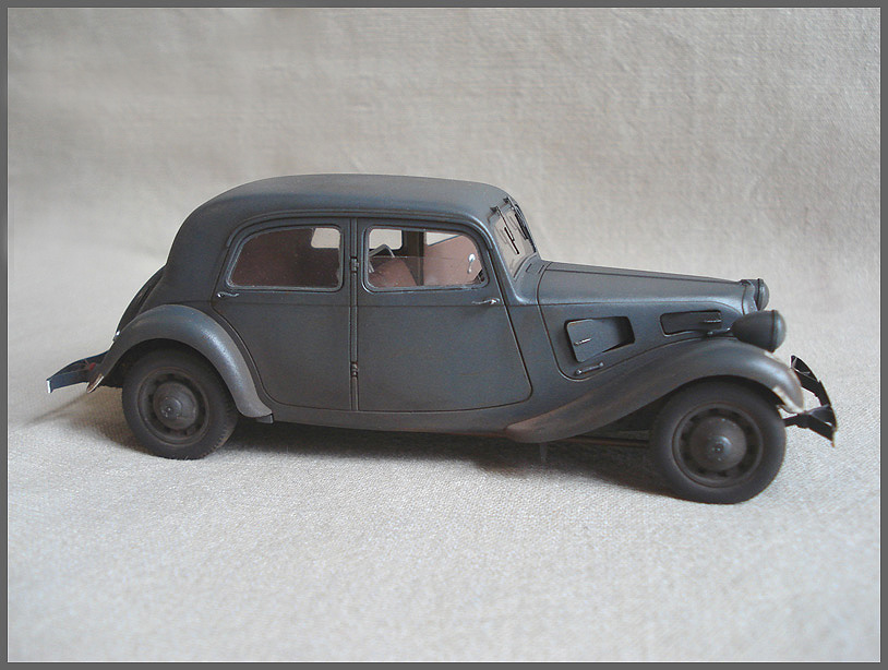 Добрый день! Вот закончил еще одну свою модель. Модель автомобиля Citroen Traction 11CV с маркировкой 112 пехотной дивизии ремонтного обоза. Очень приятный набор, получил удовольствие! Использывал дополнительный набор фирмы Aber 35231.