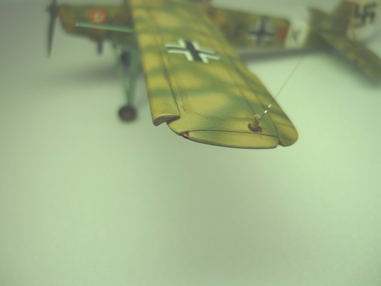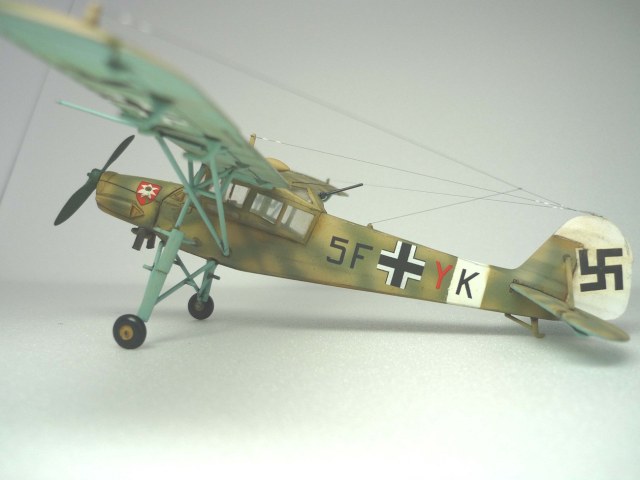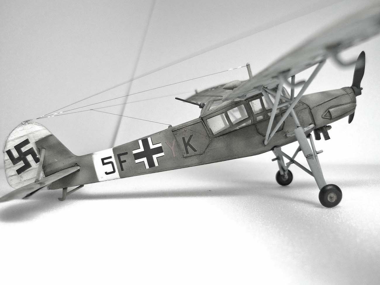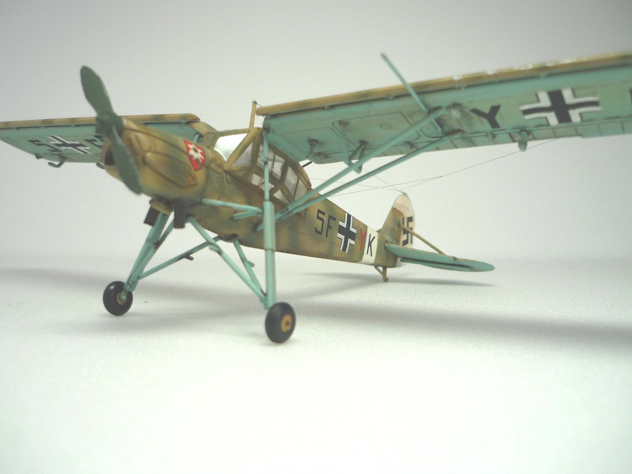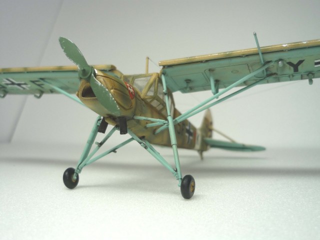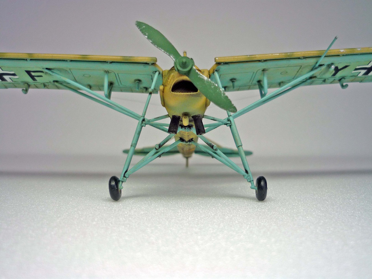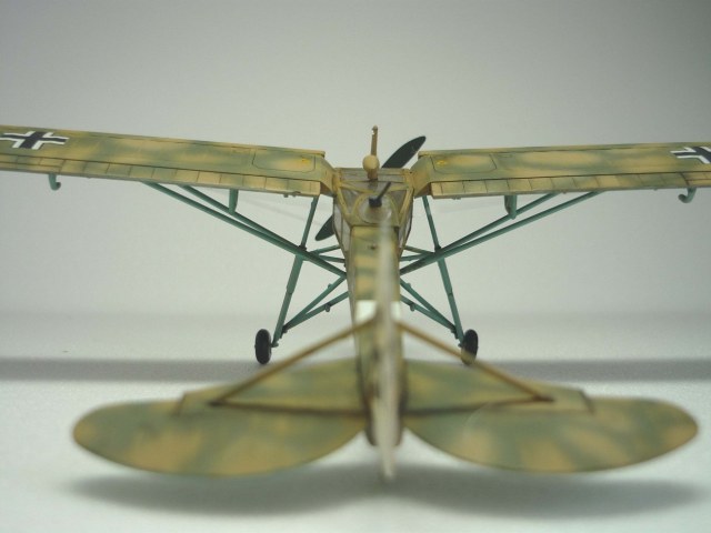 Доброго времени, Коллеги! Выставляю на ВАШ суд модель знаменитого немецкого Аиста! Собираемость кита неплохая..трудности возникли при сборке кабины. Шпаклевал только шов сверху фюзеляжа( Тамиевской шпаклевкой). Красил верх водорастворимым Аканом...низ акрил vallejo. Смывка акрил-звезда+фейри. Из доработок-выхлопные патрубки( из фольги самоклейки),антенны нить из бантика, пулемет и пито иглы,ну и капот обклеил фольгой . В наборе к сожалению не было свастики((((...в запасах нашел но мне кажется великовата....делать нечего..что было,то и оставил. Немного запачкал пастелью...немного сколов на предкрылках.....и финишное покрытие матовым лаком. Вот что в итоге и получилось.