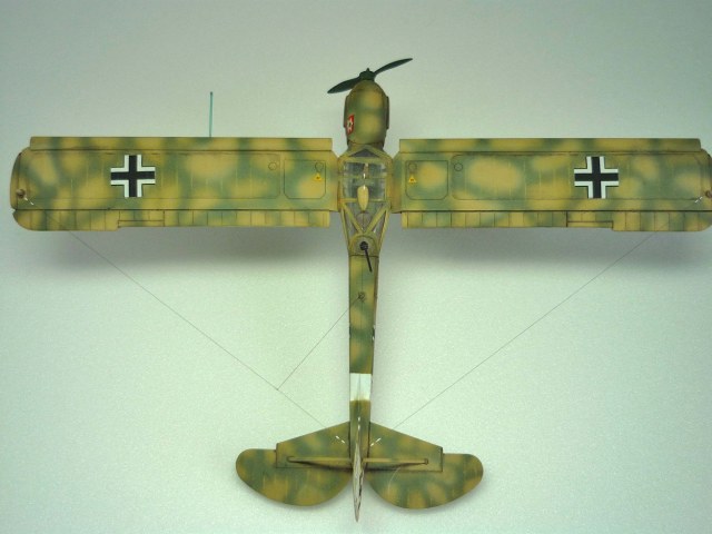 Да кто-ж спорит-то! Только лично я и половны этих наворотов на своем воспроизвести не смог. Он ведь даже для 72-го маловат, этот аист! В коробке кстати есть вариант сборки французского Моран-Солнье, только инструкция об этом стыдливо молчит. Плюс в коробочке имеем кюбельваген одного из известных асов мессера-109, не имеющий к борту никакого отношения. Сам я споткнулся на 2-х вещах: попытка детализировать двигатель привела к покупке полезного в хозяйстве инструмента (гравера, мини-дрели), и не смог воспроизвести истинный камо аэрографом (уж больно тонкие и и частые полосочки на оригинале). Видимо буду кистью...