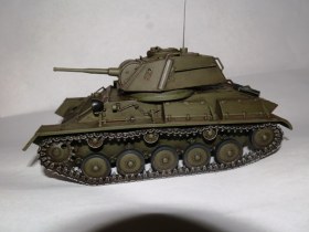 Модель делал в отпуске,около трех недель,не смотря на оч.не плохое качество отливок,сборка оставила двойственное впечатление,с одной стороны отличная стыкуемость,с другой-не приятный хрупкий пластик и множество мелких не проработанных моментов,не позволяющих поставить эту модель в один ряд с тем же Трумпетером,таких как небольшие утяжины и смещение форм,не проработанное фиксированное крепление балансиров,крепление башни в погоне и кожуха выхлопных труб,не внятные катки.