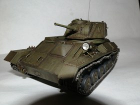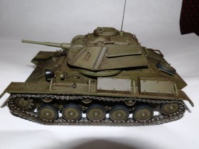 Представляю модель Советского мелкосерийного легкого танка Т-80.Модель делал в отпуске,около трех недель,не смотря на оч.не плохое качество отливок,сборка оставила двойственное впечатление,с одной стороны отличная стыкуемость,с другой-не приятный хрупкий пластик и множество мелких не проработанных моментов,не позволяющих поставить эту модель в один ряд с тем же Трумпетером,таких как небольшие утяжины и смещение форм,не проработанное фиксированное крепление балансиров,крепление башни в погоне и кожуха выхлопных труб,не внятные катки.Но в целом все таки модель достойная.Первый опыт с травлением у меня не совсем удался,не осилил замки на ящики ЗИП,плохо подгонялись крылья(были с изломом),пришлось натягивать.Окрашивал кистью,акрилом от Валеджо,цвет мешал сам.Затем лак из баллона от Арми паинт,смывка Миг(темная и коричневая),попытался кое где нанести сколы.Добавил проводку к фаре и саму фару от Эльфа.Антенна -тянутый литник,пулемет игла.Триплексы даются прозрачными деталями,но я их плохо замаскировал и подпотил лаком.Финишное покрытие мат.лак из баллона.