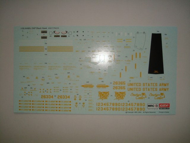 Представляю обзор известной модели от фирмы Academy - AH-60 BLACK HAWK. В огромной красочной коробке лежало 7 огромных литников. Длинна фюзеляжа - около 44 см. При ближайшем рассмотрении обнаружилось что на главных половинках корпуса замылена расшивка. Облоя на обнаружил. В целом набор оставил приятные впечатления. Декаль порадовала техничкой. Модель была мне подарена, а т.к. собираю БТТ то думаю что без помощи авиаторов мне не обойтись!
