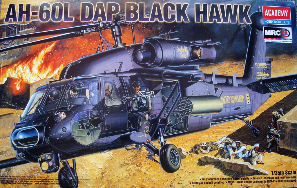 Kiowa Warrior от Академии в 35-м лежит)). Это бывшие модели MRC середины 90-х. Доделывать много придется)). Сами наборы шикарны, но не хватает обычно ооочень много мелочевки, которую придется с нуля делать. И стекла не трогайте руками лишний раз, замаетесь их потом полировать, и ещё хуже, если трещину получите))).