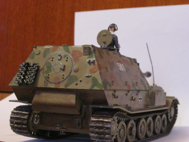 Причина неудачного камуфляжа на мой взгляд в однообразных пятнах с почти одинаковыми очертаниями и величиной,закругление пятен также одинаково.Посмотрите на Каропке камуфляжи Элефантов надеюсь это поможет в дальнейшем.Декали слишком чистые,и вообще модель по материальной части больше соответствует Фердинанду.