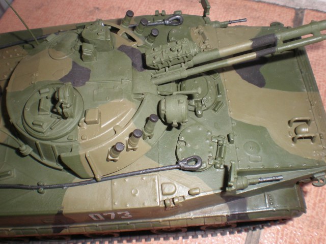 В современке не силен, но что бросается в глаза: на левом борту траки на звездочку не легли, шанец и тросы не закреплены, крепление лопаты в цвет дерева окрашен, триплексы все закрашены в базу. Камуфляж понравился, но тонировки не хватает модели.