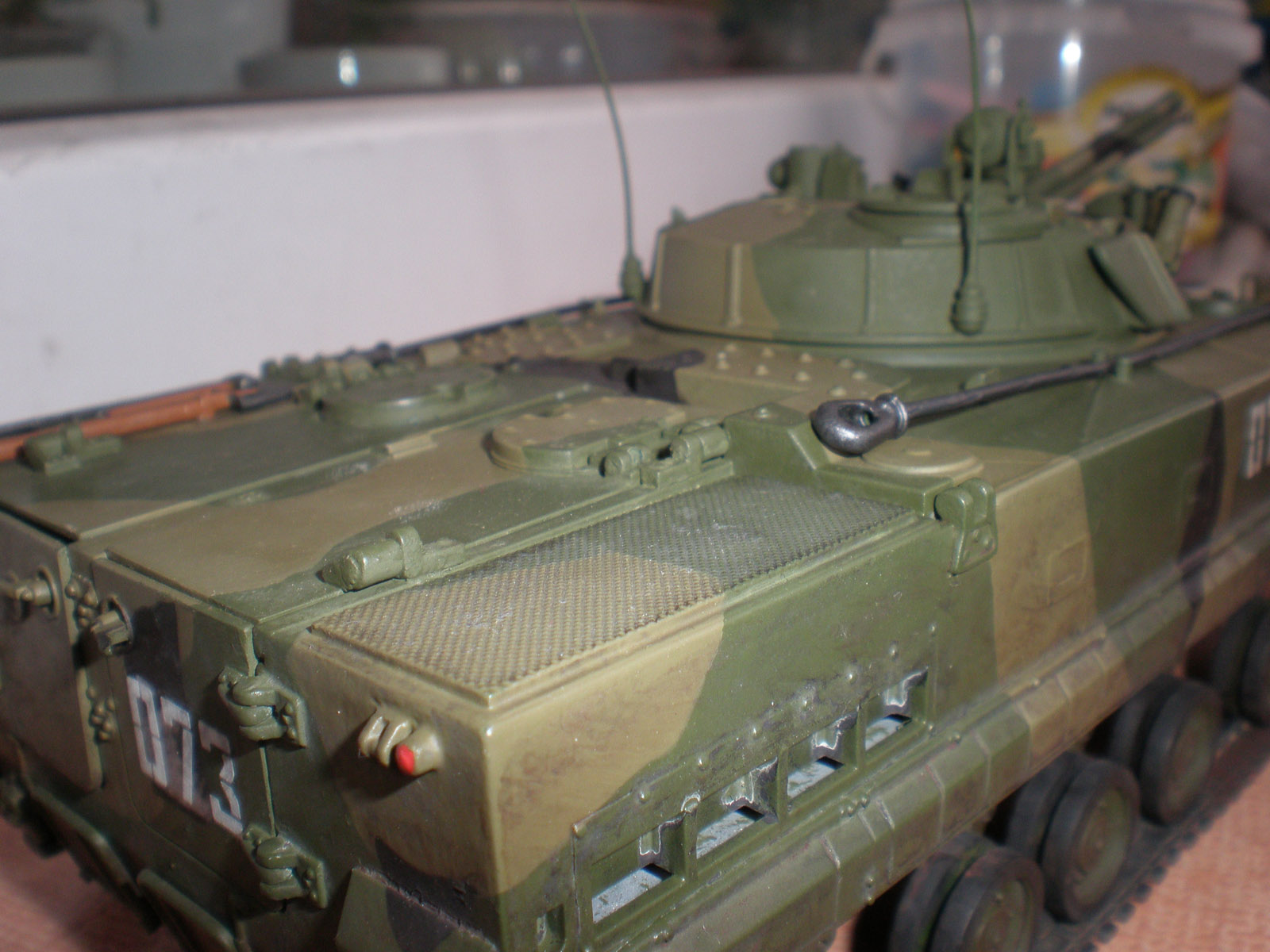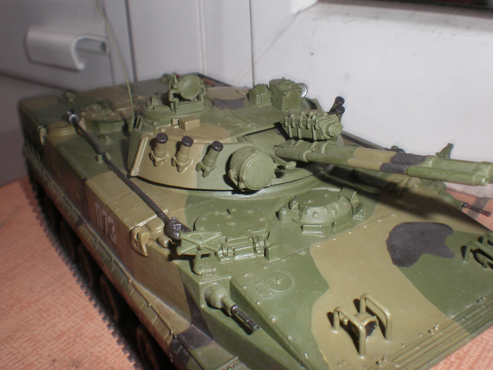 Приветствую. Представляю вам свою модель БМП-3 от Скифа. Красил основной слой кистью пентафталевой краской, остальные слои аэрографом нитрокраской.