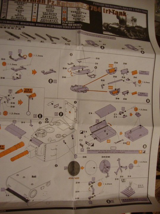 Предлагаю вам заглянуть в коробочку с фото травлением от фирмы Voyagermodel набор для трофейного "кв2" (Pzkpfw KV-2). Набор состоит из 3 заглушек, одного прутка, одной большой платы травления, платы с ящиками и платки с мелочёвкой и сетками мто, так же в наборе имеется точёный ствол. Инструкция представлена на 2х листах всё достаточно понятно, травление очень хорошего качества все ящики предлагаются рабочими так же рабочий люк ком. башенки единственное чего не хватает так это надгусиничных полок, еще есть листок не понятно чего похожее как кусочек коры или чего то похожее но я так и не понял зачем он. Не самое приятное впечатление произвёл точёный ствол, качество оставляет желать лучшего, для сравнения сфоткал рядом ствол от "RB". Покупался набор в магазине Армор-35 цена 630р.
