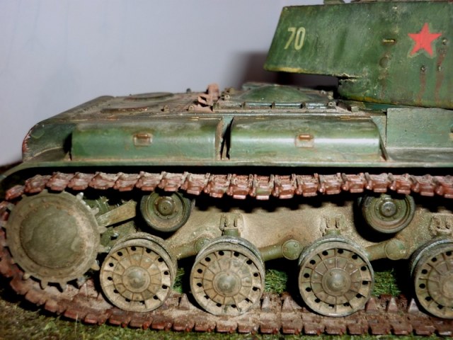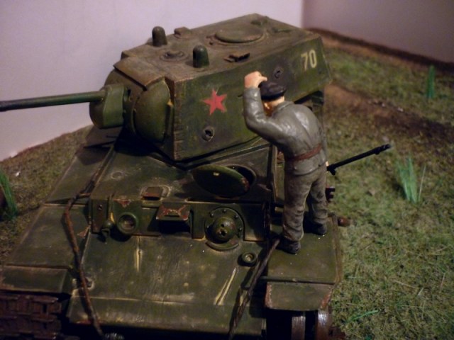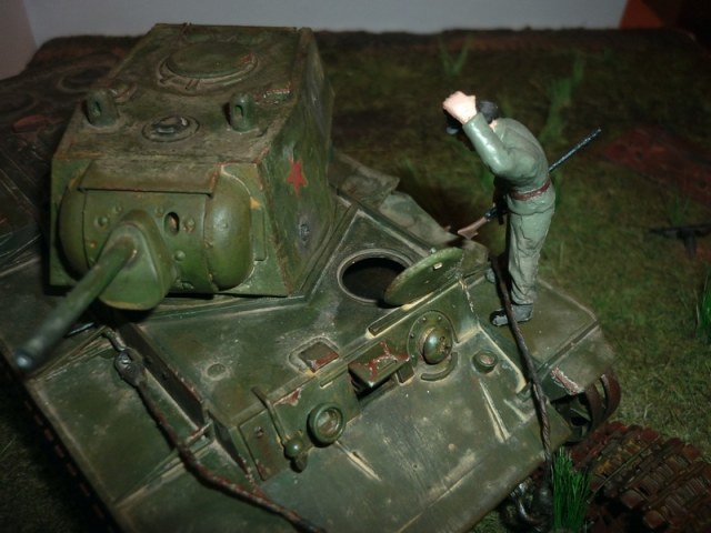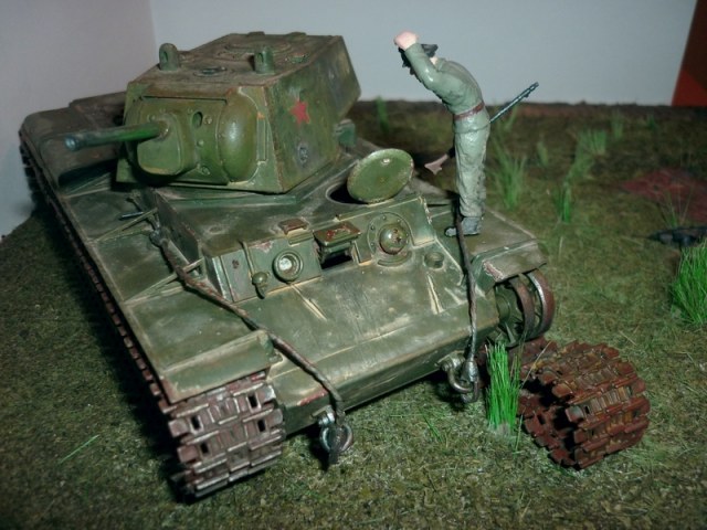 в общем очень классная диорама, но вот с КВ немного подкачали 1)стёклышка фары нету. 2)гусеница на правом борту на зубьях не держится