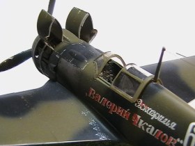 здравствуйте господа моделисты! предоставляю на суд очередную работу. сразу про косяк! после нанесения надписей"валерий чкалов" заметил что забыл нанести на борта звёзды. потом как не старался исправить ситуацию,ау! результат на лицо. про модель красил аканом и тамией добавил травлёнку правда от ла не нашел сделал от лагг-а