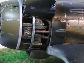,заголовник легко покрасить в чёрный или коричневый.Стяжная лента на капоте и вывернутая стойка - тут уж придётся поработать,на усмотрение автора.Понравились привязные ремнии и общий вид модели. Вот только ручек перезарядки пушек в кабине не хватает, да и фото снизу не помешали бы.Успехов!