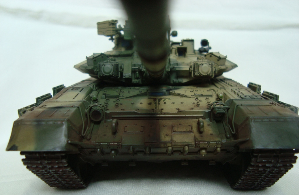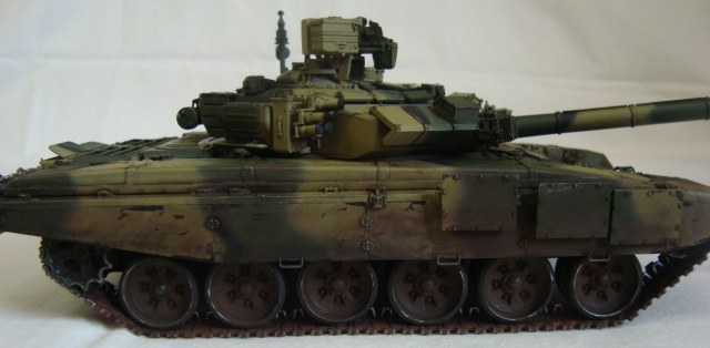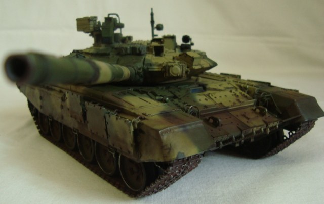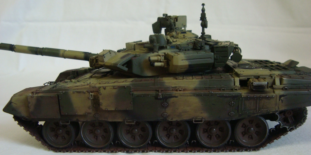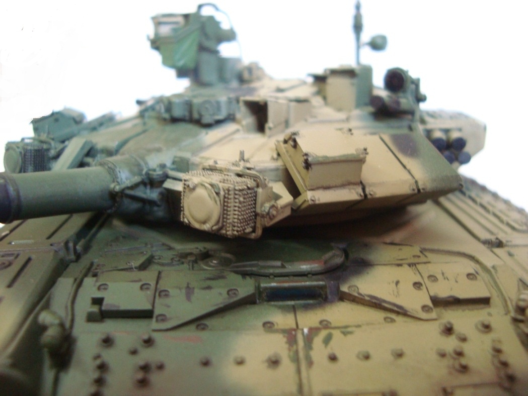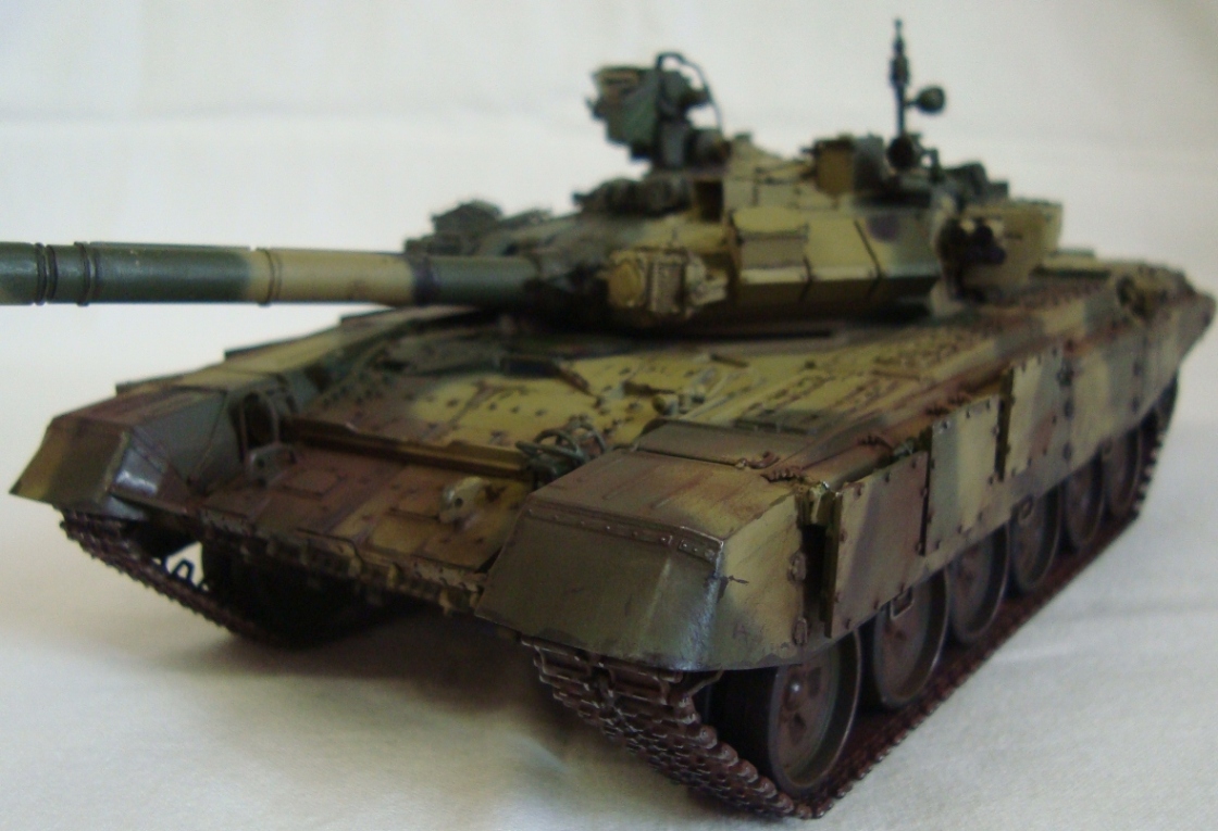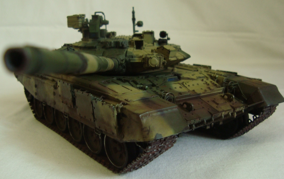 Привет всем!!! Наконец то и я сделал свой Т-90, который начал собирать еще в 2011. Модель мне в принципе понравилась, качеством доволен. Собирал из коробки без дороботок. Красил тамией из аэра. цвет песчаной краски на 98% подобран с настоящей машины!!! Пыль - пигменты мастерпигмент. Чуть позже антенку прилажу еще... К пинкам готов))