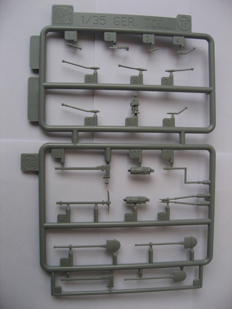 Данный кит укомплектован в обычной драгоновской манере. Одинадцать больших литников и десять маленьких. Минимум фототравления и не много дополнительных инструментов и оружия. Также не обошлось без литника на Pz. IV.