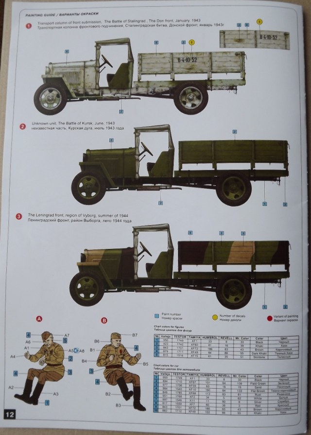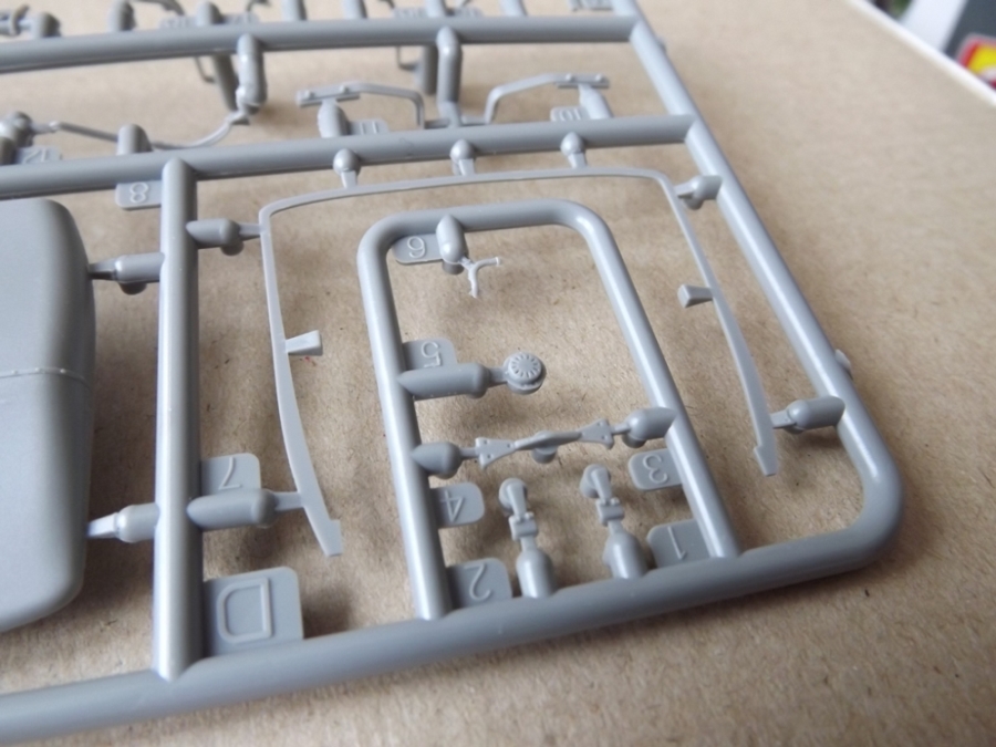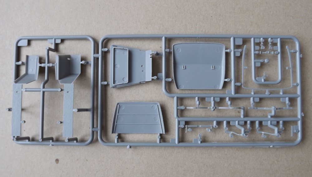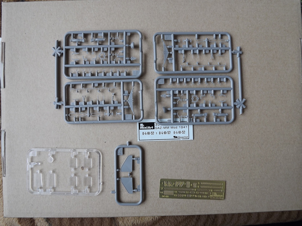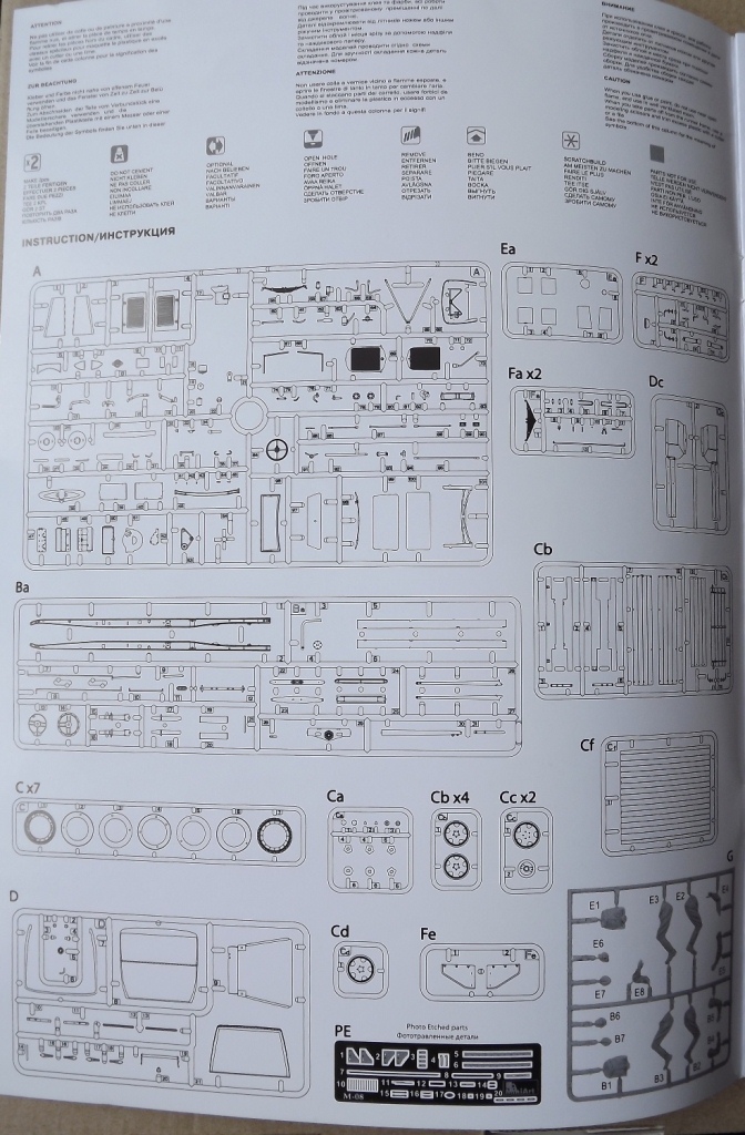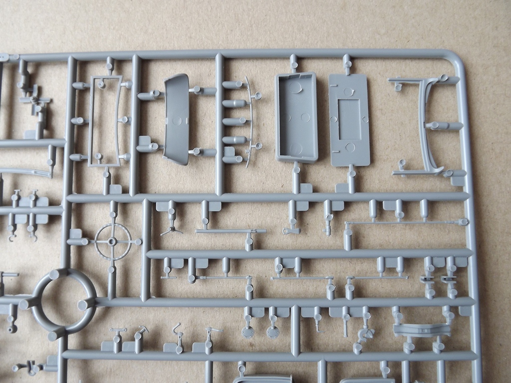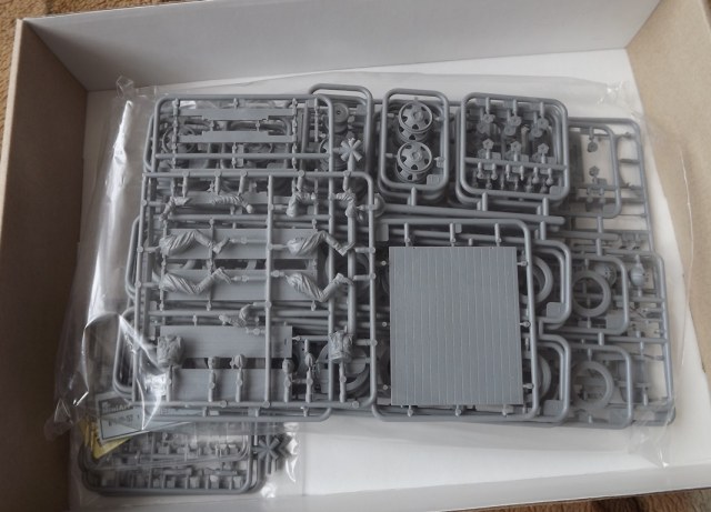 Теперь о наборе: все упаковано в красочную коробку, внутри литники из серого пластика упакованы в два пакета - в маленьком пакете четыре литника, в том числе один литник из прозрачного пластика, декали и небольшая плата фототравления. Во втором пакете - десять литников. качество на первый взгляд отличное каких либо проблем не заметил (может от радости). Проработка деталей тоже обрадовало. Инструкция в виде книжки- все понятно, имеется три цветных боковика с вариантами окраски. Так же имеется литник с фигуркой водителя.