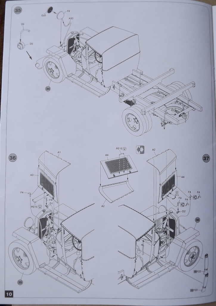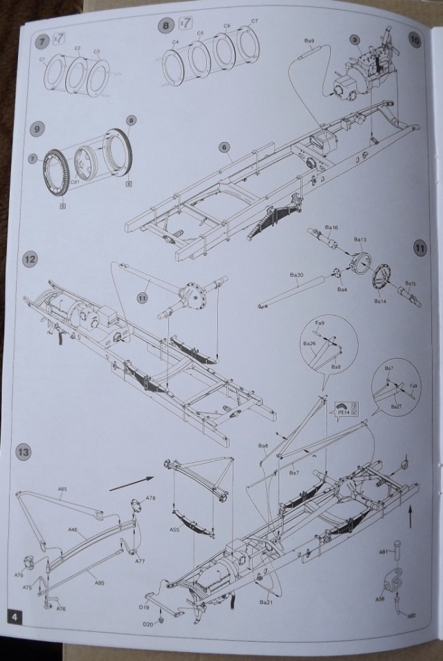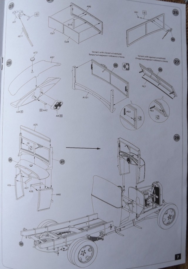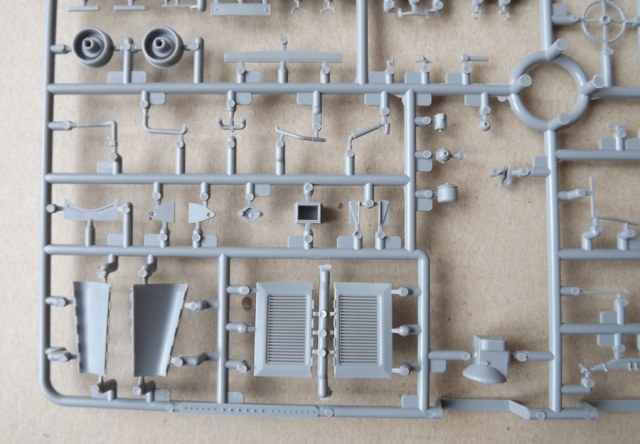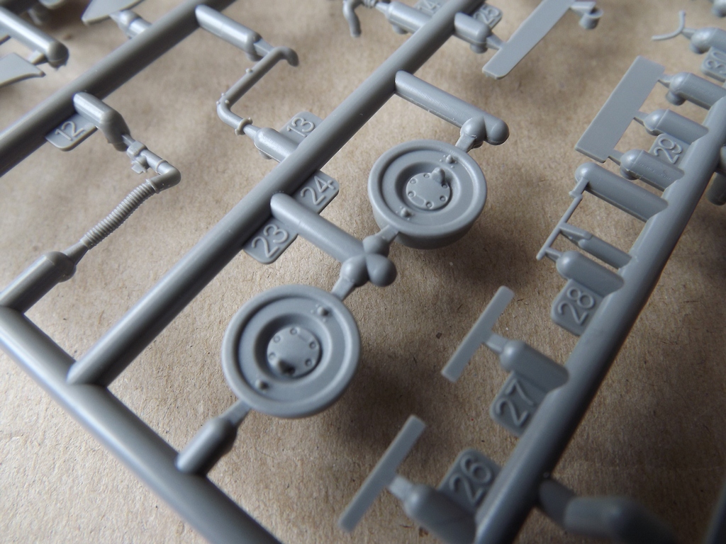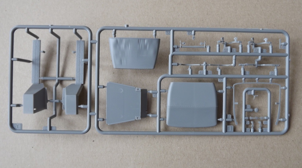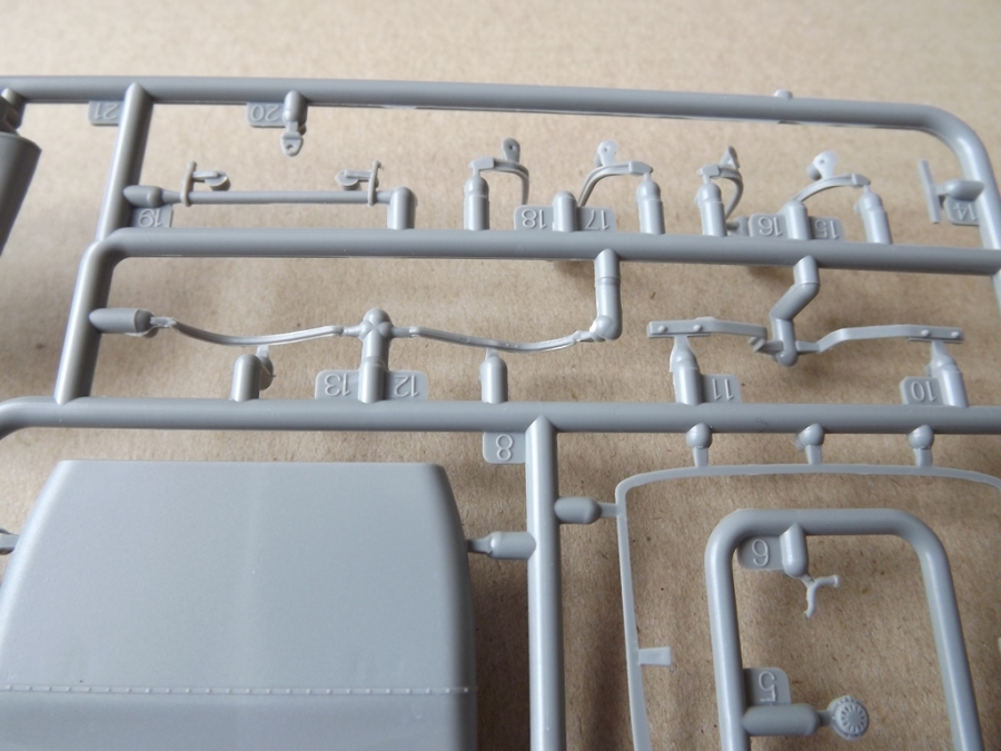 Теперь о наборе: все упаковано в красочную коробку, внутри литники из серого пластика упакованы в два пакета - в маленьком пакете четыре литника, в том числе один литник из прозрачного пластика, декали и небольшая плата фототравления. Во втором пакете - десять литников. качество на первый взгляд отличное каких либо проблем не заметил (может от радости). Проработка деталей тоже обрадовало. Инструкция в виде книжки- все понятно, имеется три цветных боковика с вариантами окраски. Так же имеется литник с фигуркой водителя.