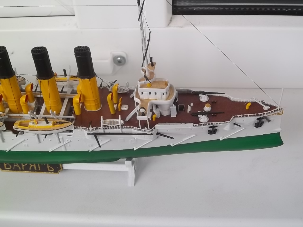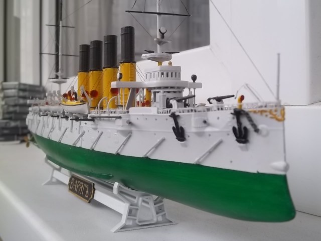 Прежде чем писать отзыв на модель, просмотрел галерею и насчитал восемь "Варягов". Какие же они разные, по качеству исполнения. Двум штукам, и в песочнице превеликая честь быть бы.