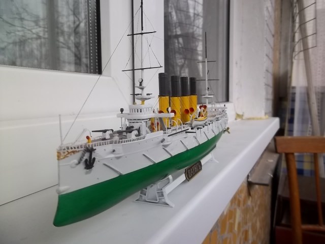 Очень трудно оценивать данную модель после броненосного флота Адмирала Лежнева, уж СЛИШКОМ ДАЛЕКО сей модели до упомянутых мной броненосцев. Не спорю, всякая модель имеет право на существование, но на мой (субъективный) взгляд рановато сему крейсеру становиться на рейд Галереи. Как "парусник" я не могу оценить матчасть, однако прочитав комментарии Коллег понял, что мое, чисто интуитивное "сделано "по мотивам"", подтверждается.
