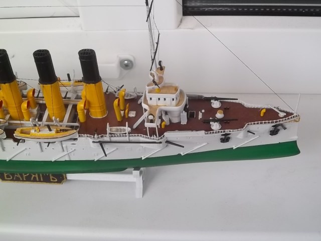 Спасибо Друзья за отзывы и советы- я их очень ценю. Да есть тут адмиралы на которых я равняюсь и Алексей Лежнев первый в Этом списке. Но мне еще долго не стоять с ним в одном ряду. О модели добавлю: да-да цепь это действительно бижутерия(она единственная хоть как- то подошла по размеру!!) несоответствие в цветах обьясню скудным набором красок спасибо, что раздобыл хоть это( а ТИТАНИК я не красил, если кто не знает, у него пластик цветной) Шпаклевал я автомобильной шпаклевкой, оставшейся после ремонта авто. Поэтому лафеты и др. мелочь не шпаклевал- шпакля слишком грубая. Вобщем недостаток, нехватка и кривые руки. Работаю с тем, что есть. Но обещаю- я буду стараться! А в галерею я и не рвусь, просто хотел чтобы вы на модель внимание обратили. Всем спасибо!!!