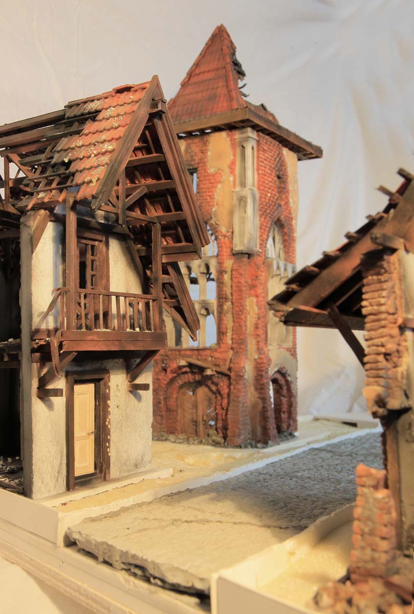 В качестве построек вначале серьезно планировалось выбрать МиниАрт (модель делалась под нее), но качество отливок не понравилось+огромное количество неточностей с точки зрения конструктива здания. Мне, как архитектору, это сильно резало глаз, поэтому решил делать по старинке - все самому.