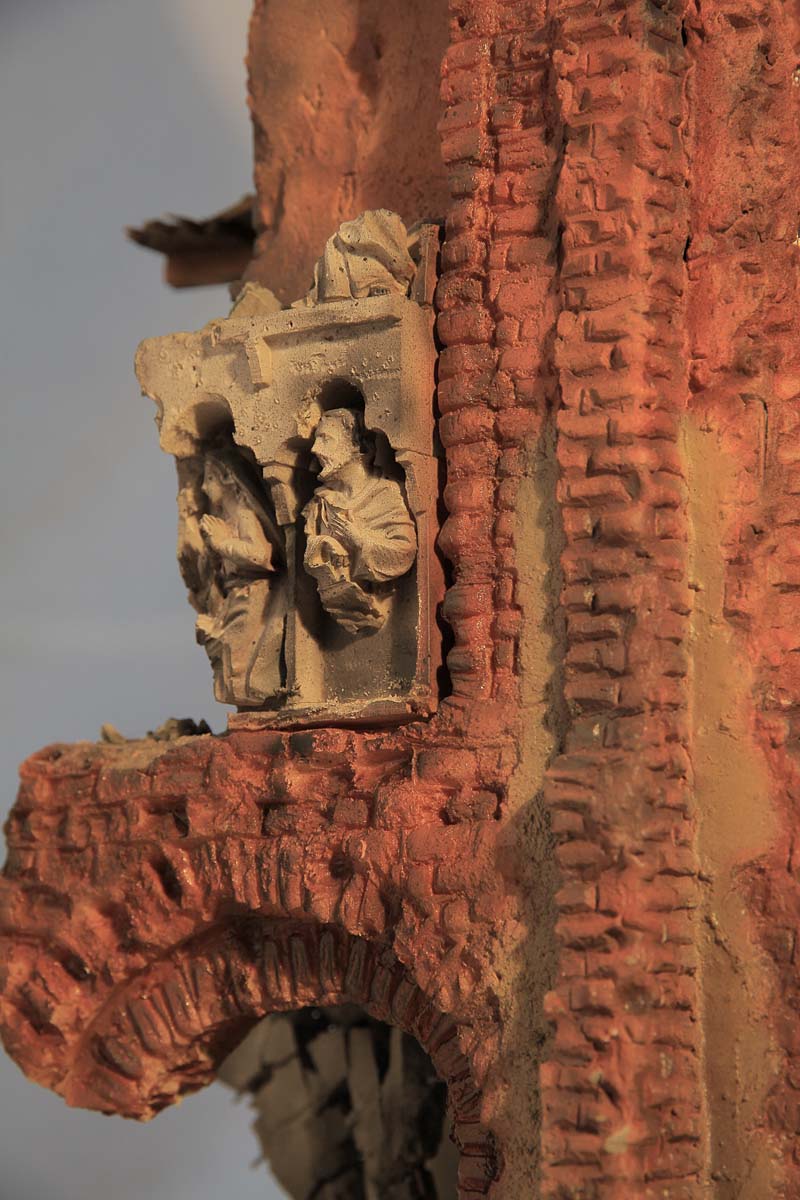 С гипсом я принципиально не работаю, т.к. он слишком хрупок. Все отливки выполнены из цемента М500 с армированием, в качестве пиломатериала - палочки от мороженного (4 человека по очереди ходили в одни и те же супермаркеты, покупали 1 мороженное и брали 15-20 палочек :))и линейки (осенило, но поздно). На 3 день твердения заготовки обрабатывались алмазными наконечниками Дремеля.