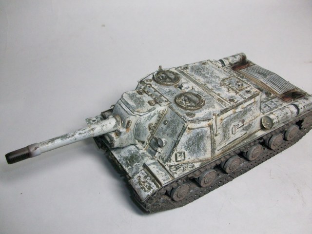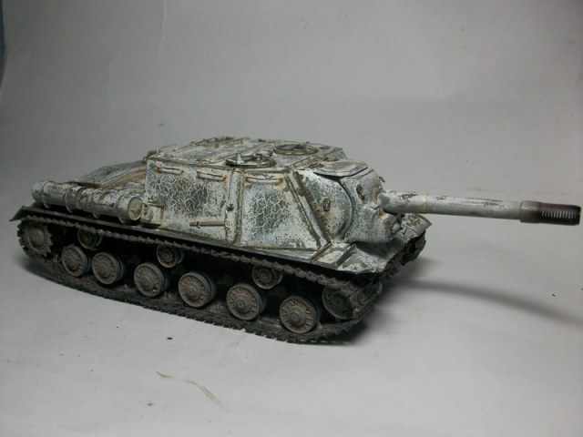 Зимний камо - самый сложный т.к. сам по себе изчезающий, причем начиная с февраля подкрашивали т. е. не везде лежит равномерно...по моему удалась постепенно исчезающая зимняя окраска...но если вы почитаете то про боевое прим-е ИСУ то в 1944-45 году машины редко камуфлировали...не успевали...постоянно в наступлении....но это не однозначно....я хочу сделать к примеру ИСУ-122 в АМЕБООбразном камо...прикольнее...но я такое фото нашел...отсебятины не хочу...УДАЧИ!!!5+