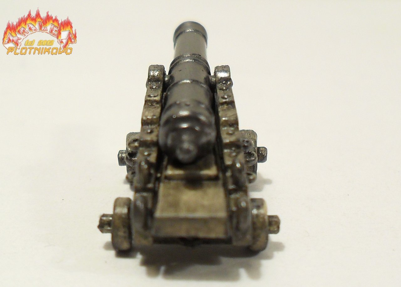 Мне кажется, что если рассматривать орудие как отдельную модель, она гораздо убедительнее и презентабельнее смотрелась бы на виньетке (с ядрами, обвязкой, талями и т.д.).