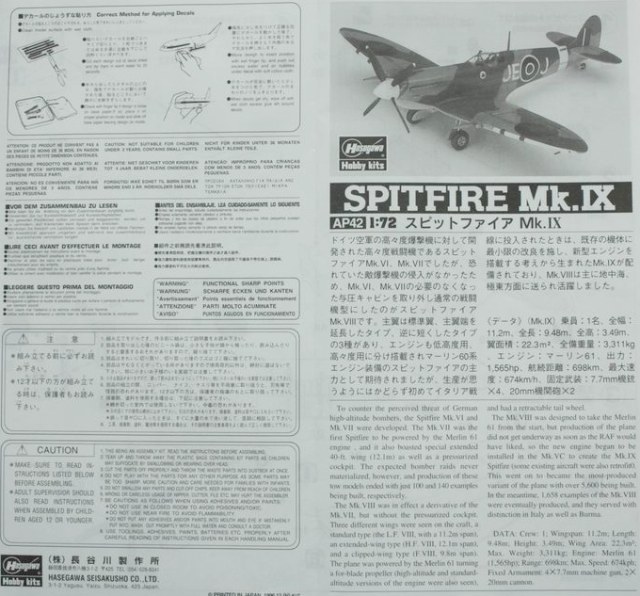 неновый набор от Hasegawa - "девятка" Spitfire Mk.IX.