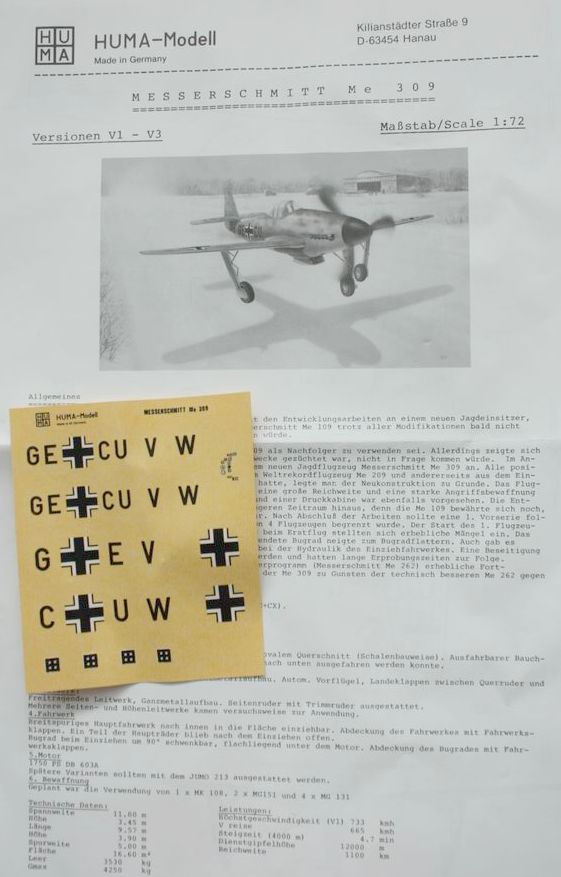 Как я уже писаль в предыдущем обзоре, редкая модель от несуществующей ныне фирмы HUMA Modell опытного истребителя Me209 V5.