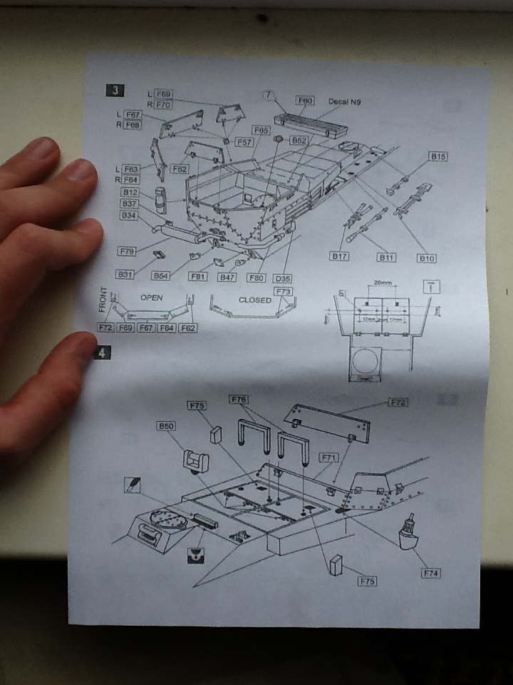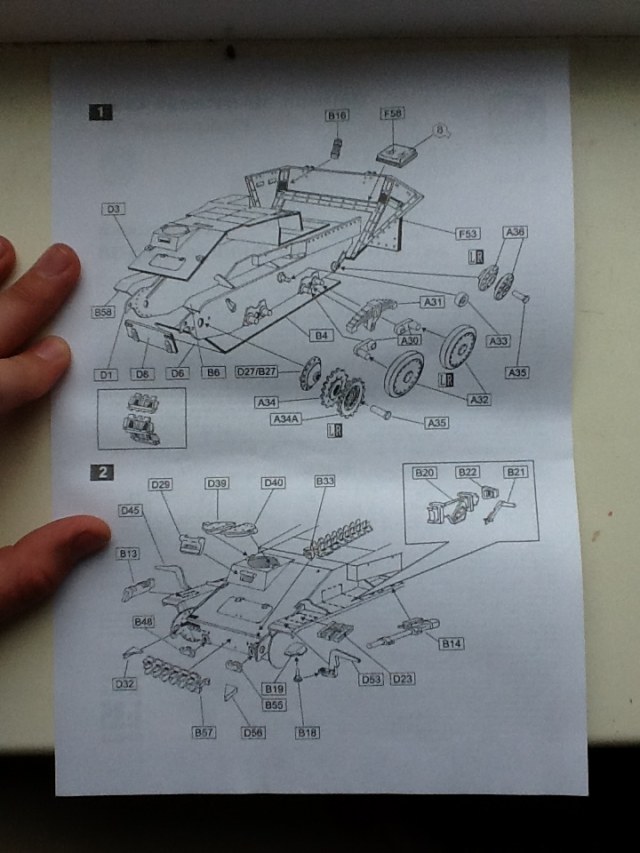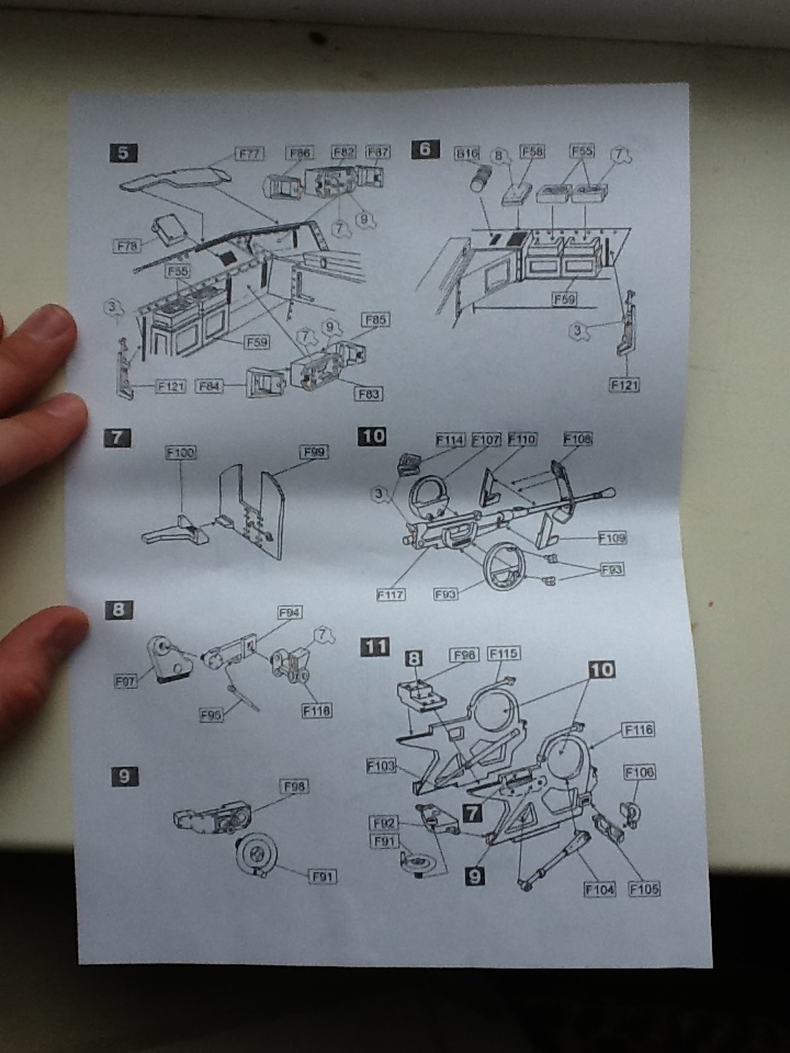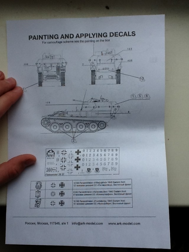 И так. Купил я коробочку, пришел домой пошел вскрывать. Открыл, вроде ничего не обычного, все было упаковано в кульке ка в звезде. Но потом я заметил что здесь зарисовано что-то но не придал этому внимание, в общем получил я ARK models , а не MSD -. И это немного огорчило. Насчет литников. Видим мы здесь 7 литников из серого пластика, дубовый, когда немного согнул хрустел -. На литниках дата 1996 ( Чувствую этл будет что-то наподобии Звезды 1995 года), тут 4 литника с надписью этой модели, два от Алана от Мардера, и один не известный -. Облой присутствует но не в очень огромном количестве +, утяжин полно, особенно на глушителе, это ужас-. Но шпакля нам в руки и напильник. Еще у нас здесь есть декали от бегемота (хоть что-то приятное) . Декали мне понравились не разваливаются, в общем +. Еще мы здесь видим 4 листа с инструкцией. Инструкция довольно понятная, мне понравилсь. +. Инструкция отпечатана на каждой стороне (листа А4 вроде) состоит из 15 пунктов, так что надо внимательно следить. На титульном листке мы видим обозначения которые там могут быть, цвета которые нам понадобятся, и небольшая информация про эту зенитку на русском и английском, но не даны номера известных производителей ( хотя это и не удивительно).