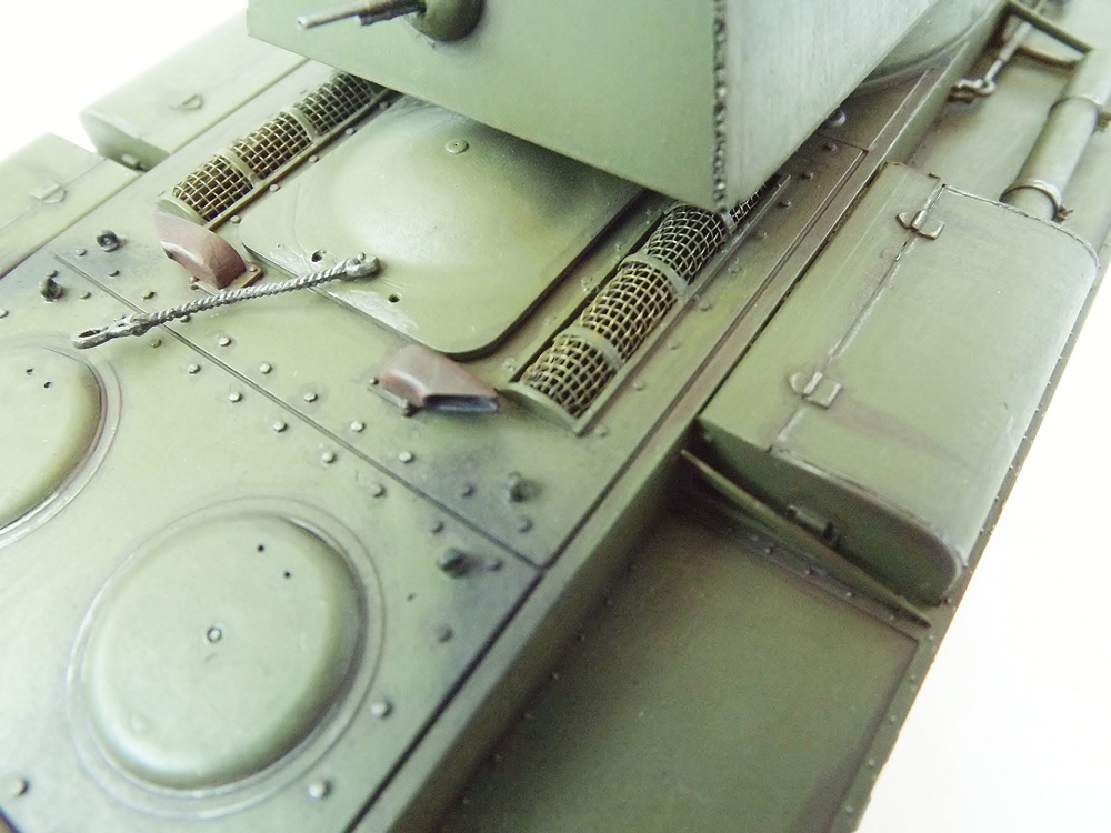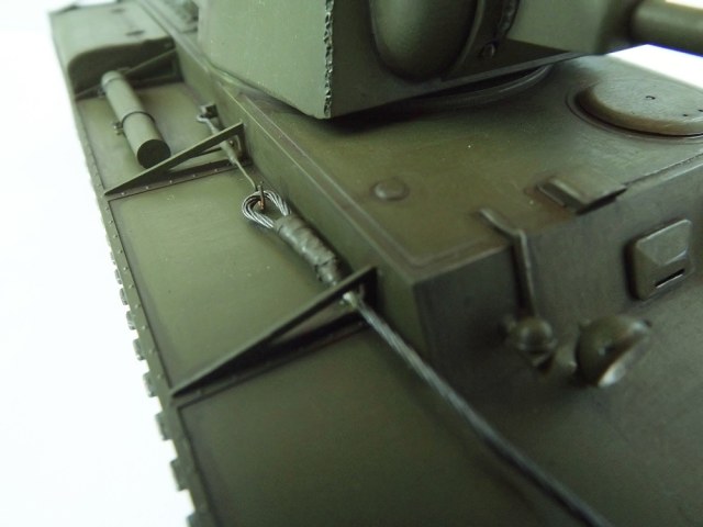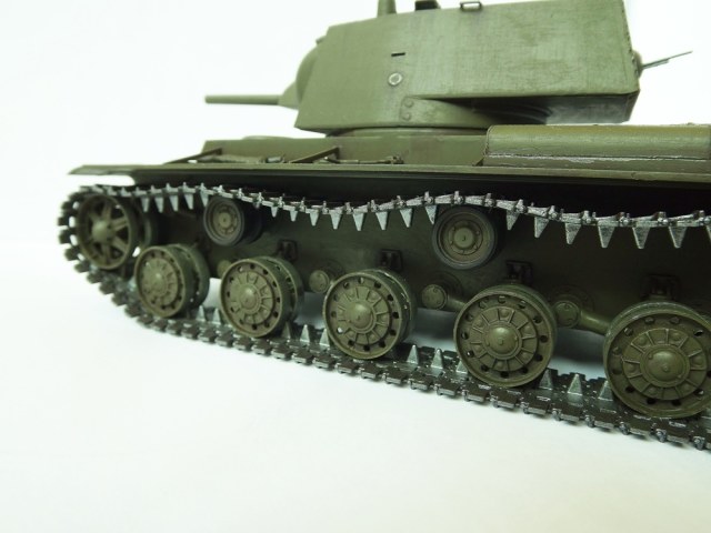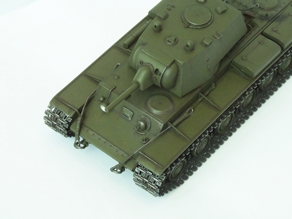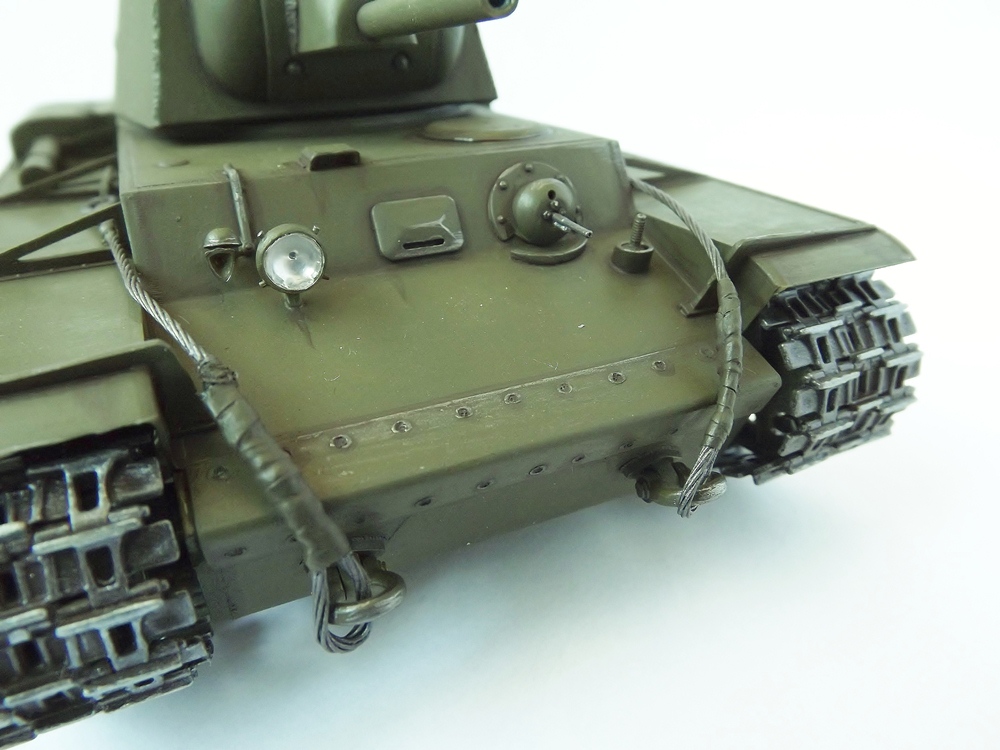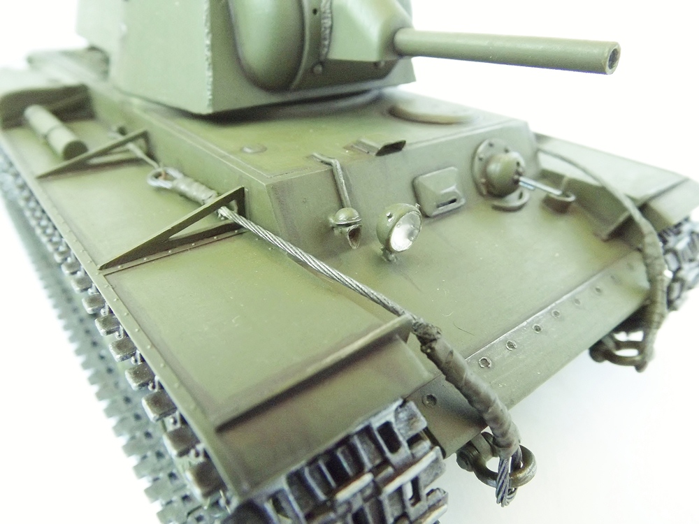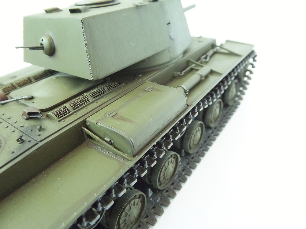 Красивый танк. В отличном исполнении, без фанатизма, по части грязнить и ушатывать. По мат.части не сужу, нет опыта в КВ, хотя здесь есть монография по схожести с оригиналом в сравнении с Трампетром.