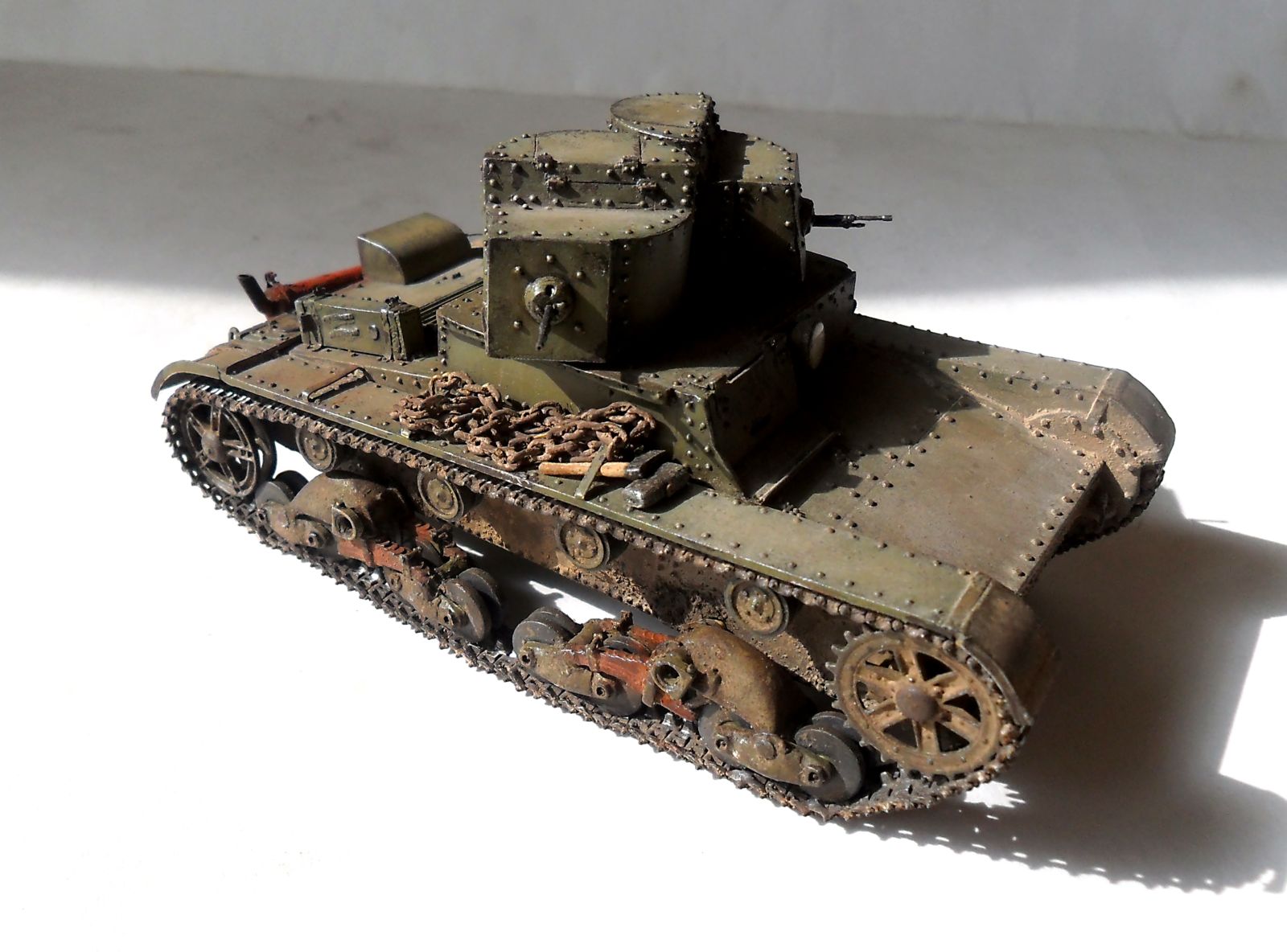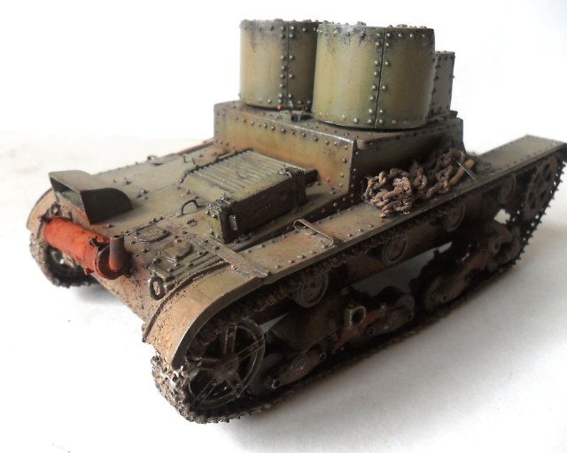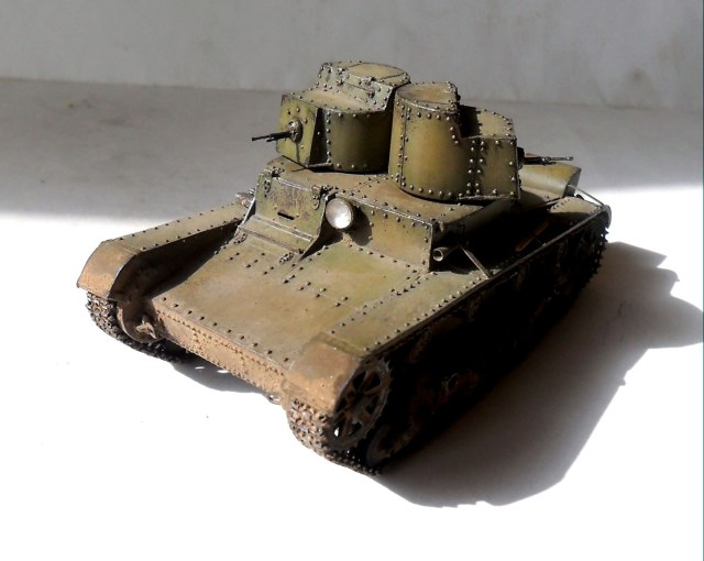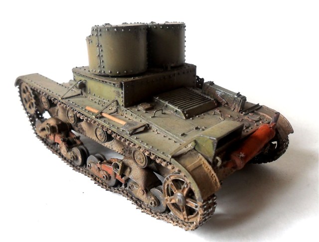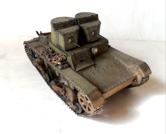 Приветствую всех коллег-моделистов! Представляю очередную модель, сделанную в рамках ГБ, легкий танк Т-26 двухбашенный с пулеметным вооружением.