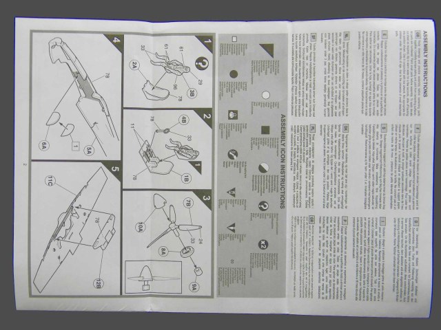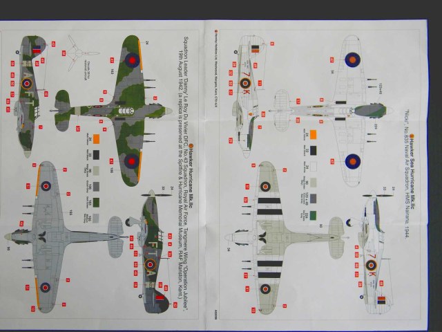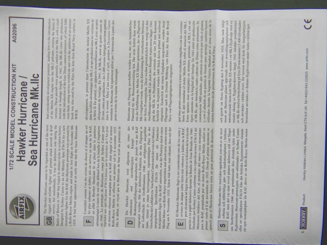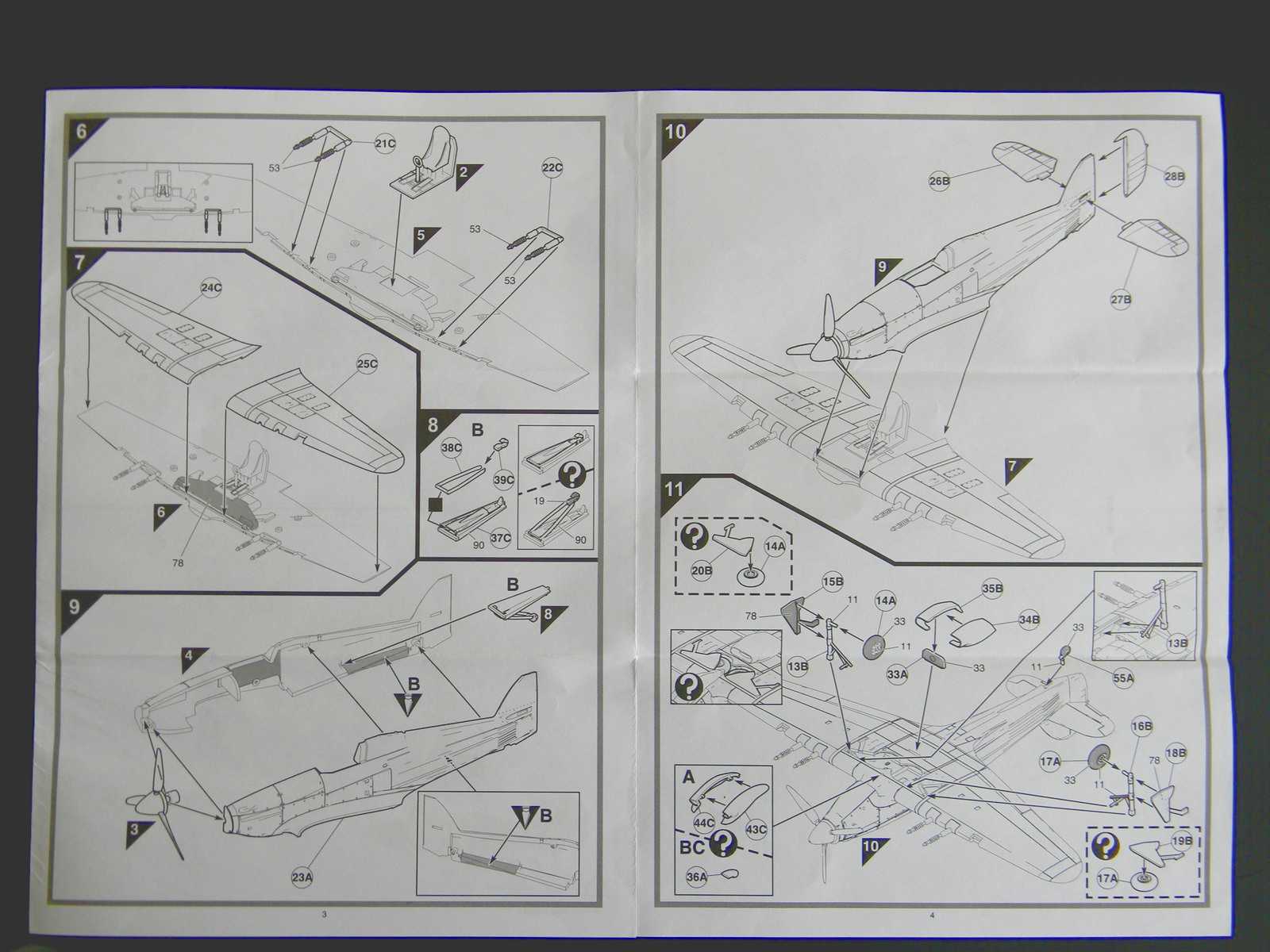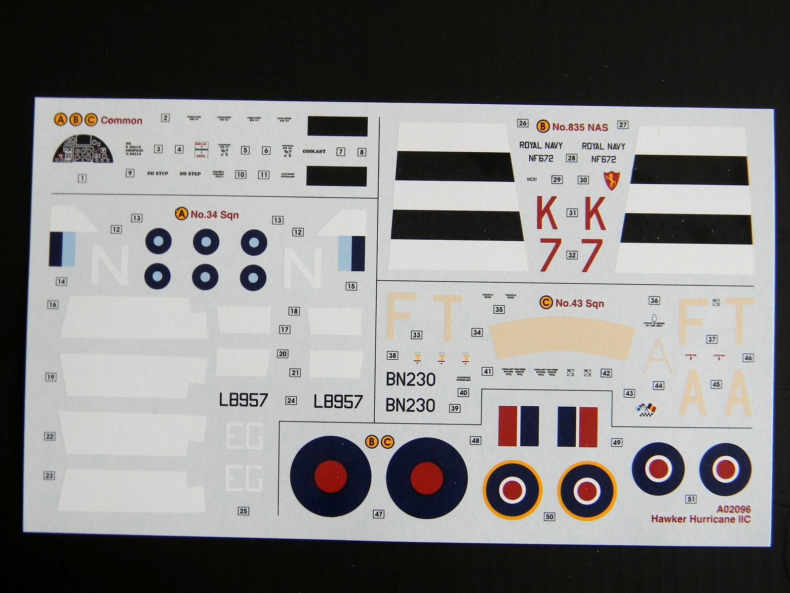 В красной коробке с верхней загрузкой лежат три литника серого пластика и один - прозрачного (фонарь). Облоя, утяжин и пр. нет, пластик относительно мягкий, обрабатывается хорошо. Шикарная декаль на три варианта, без смещения и искажения цветов. Фонарь не то, чтобы совсем тонкий, но и не толстый, как в тех же Спитфайрах. На этом достоинства заканчиваются, и начинаются недостатки.