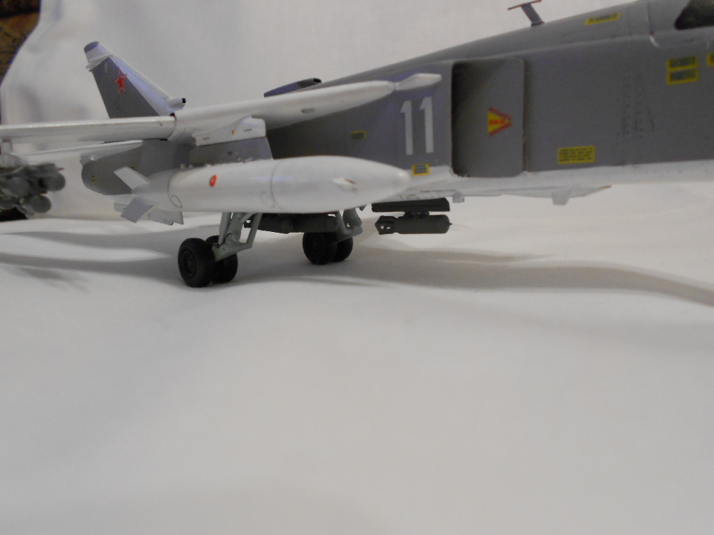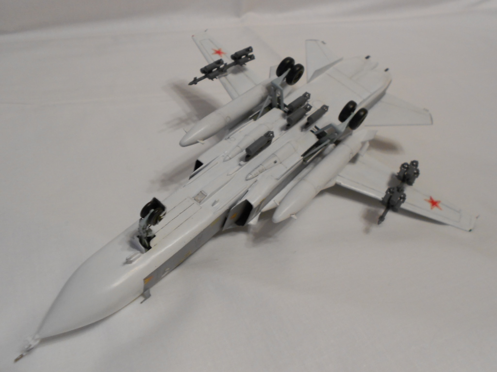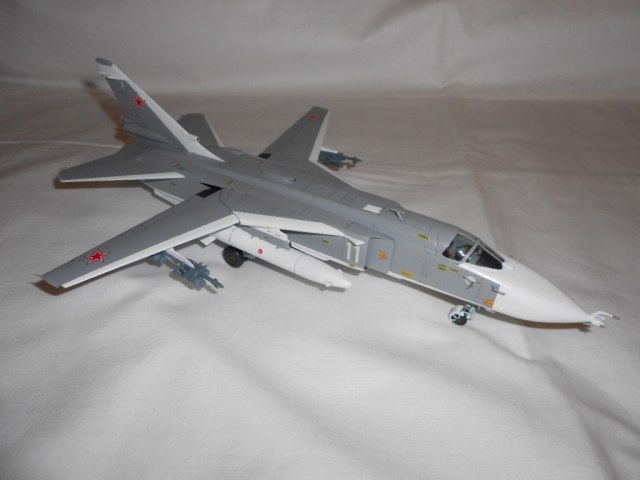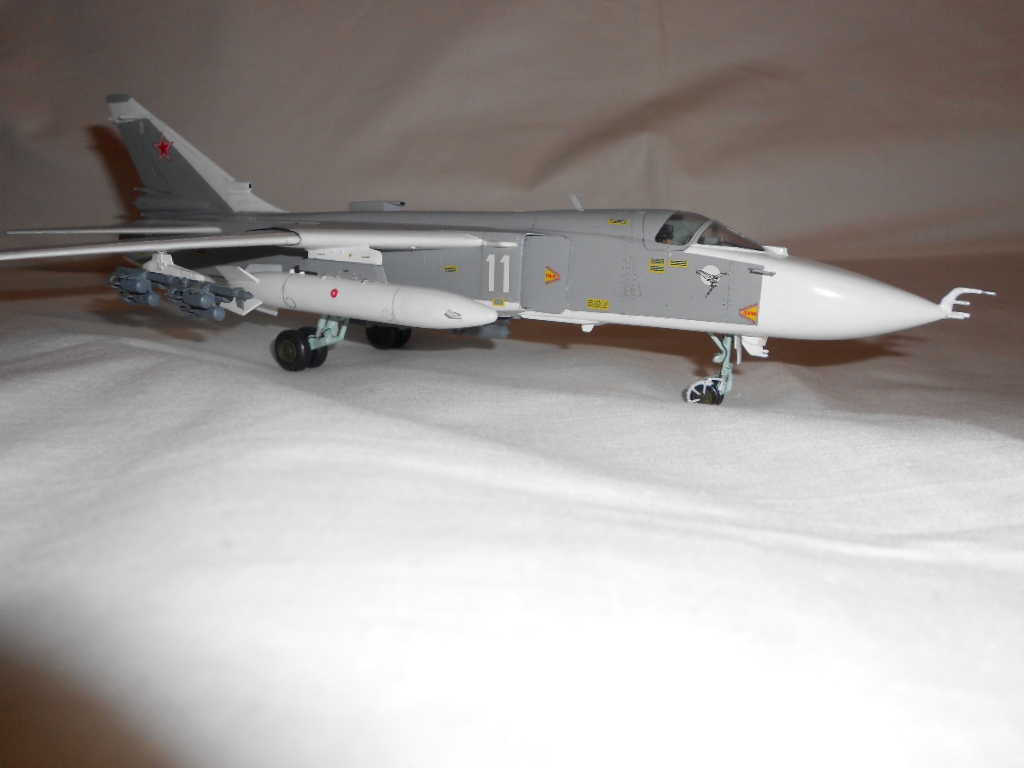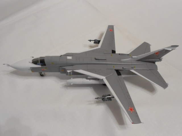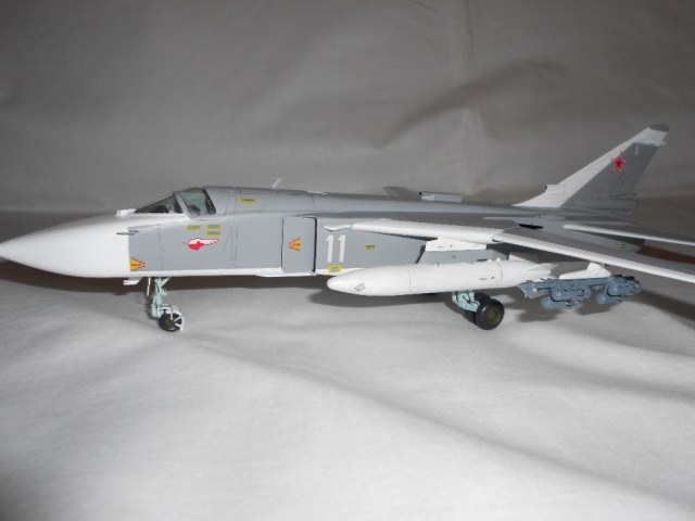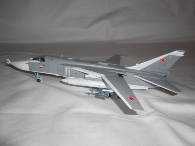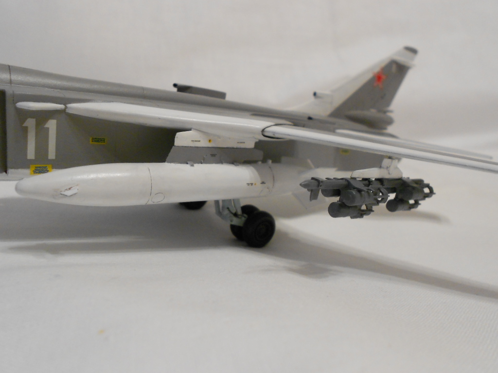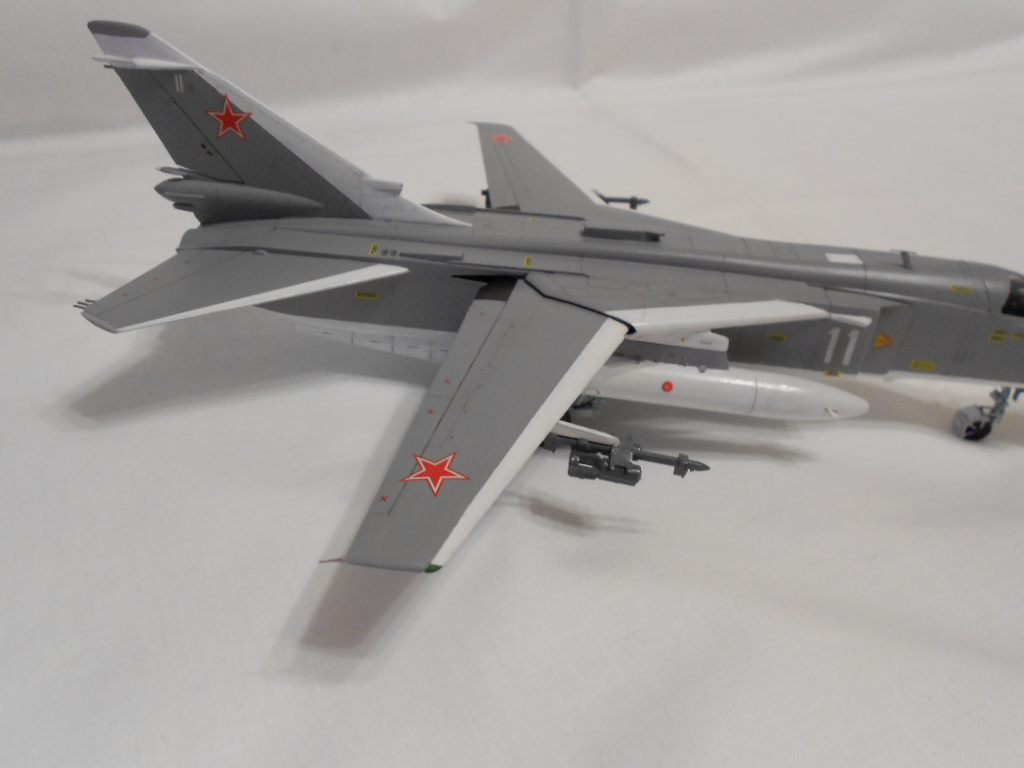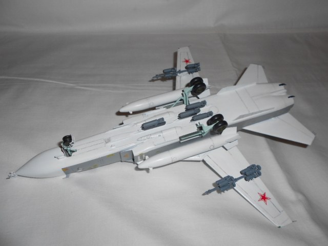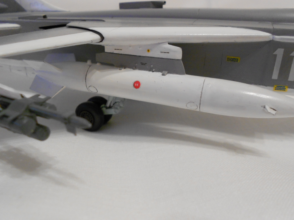 У Вас бомбы под фюзеляжем подвешены без промежуточных балочных держателей. Я собирал точно такой же набор от "Звезды", "Звезда" посмеялась над людьми: вооружения много, а балочные держатели только под ФАБ-100/250 и под две ракеты на крылья. Если хотите убедиться, могу выслать pdf файл - книгу "Су-24 в Афганистане" с большим количеством фото вариантов вооружения.