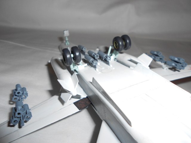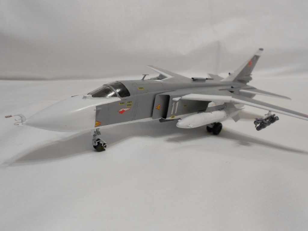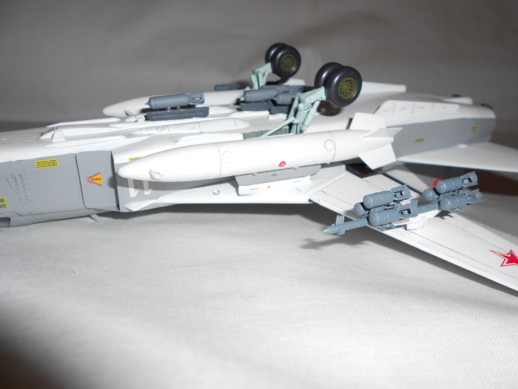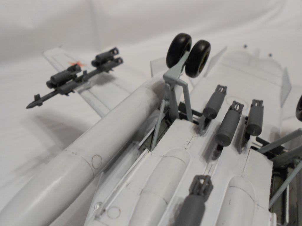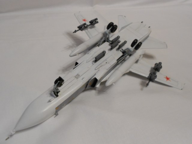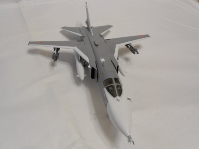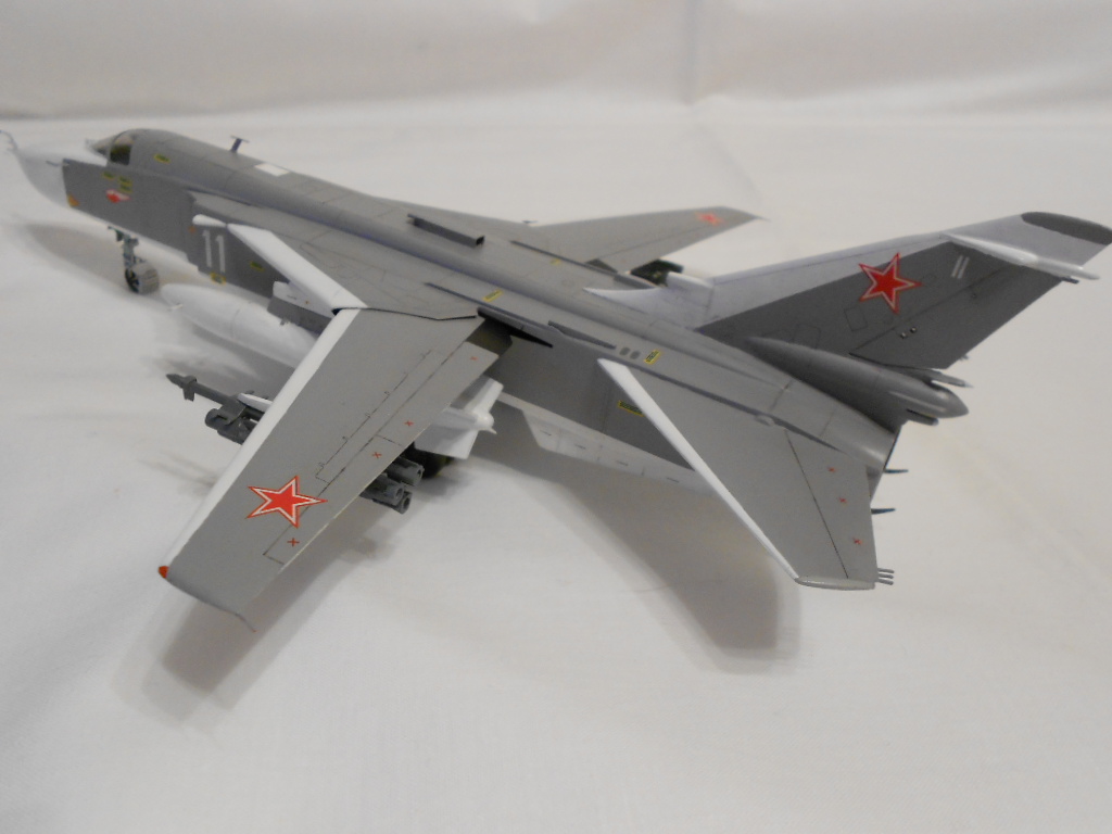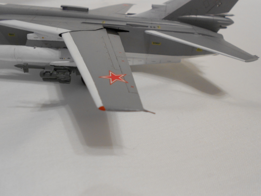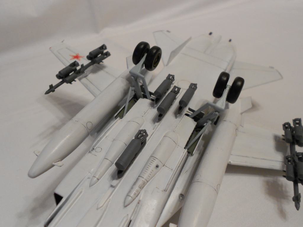 У Вас бомбы под фюзеляжем подвешены без промежуточных балочных держателей. Я собирал точно такой же набор от "Звезды", "Звезда" посмеялась над людьми: вооружения много, а балочные держатели только под ФАБ-100/250 и под две ракеты на крылья. Если хотите убедиться, могу выслать pdf файл - книгу "Су-24 в Афганистане" с большим количеством фото вариантов вооружения.