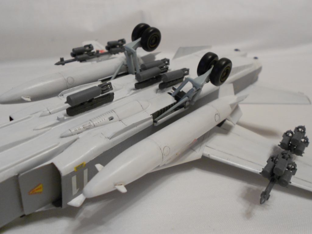 Бомбы можно бы было оставить под брюхом, пару раз попадались фото с пятью "гирляндами" на МБД причем в полете, однако с неполной их загрузкой на консолях. Для 24 для консольных пилонов максимальная нагрузка- пятисотка, а МБД- 100кг + 6 соток итого имеем 700 кг,поэтому полная загрузка- чисто показуха.
