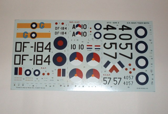 Декали на 3 варианта окраски. По качеству, похоже, что хорошие. Но Ревелл не собирал еще ни разу, опыта работы с их деками не имею.