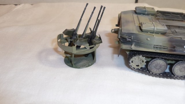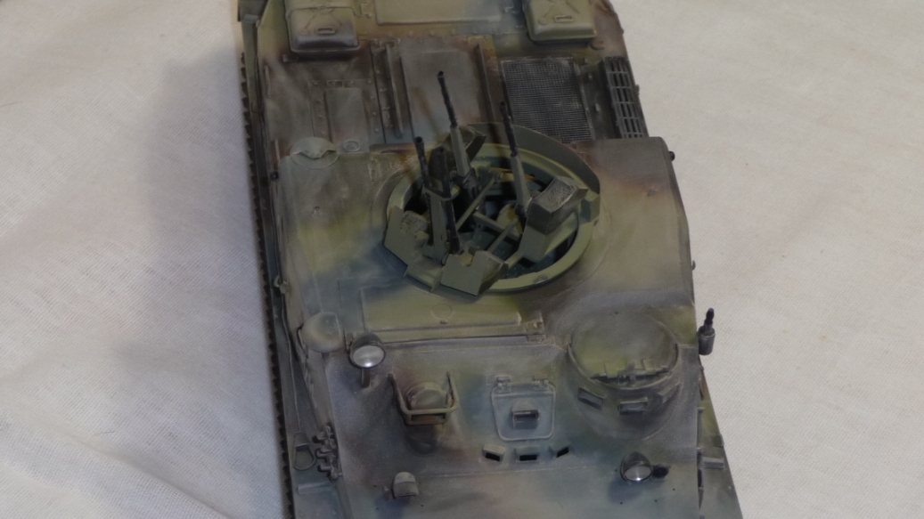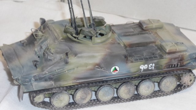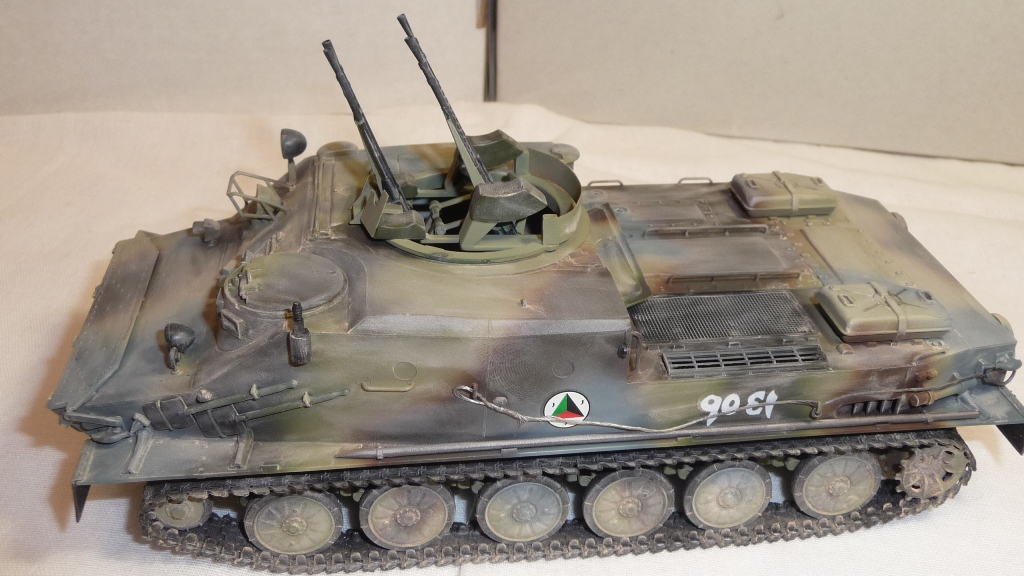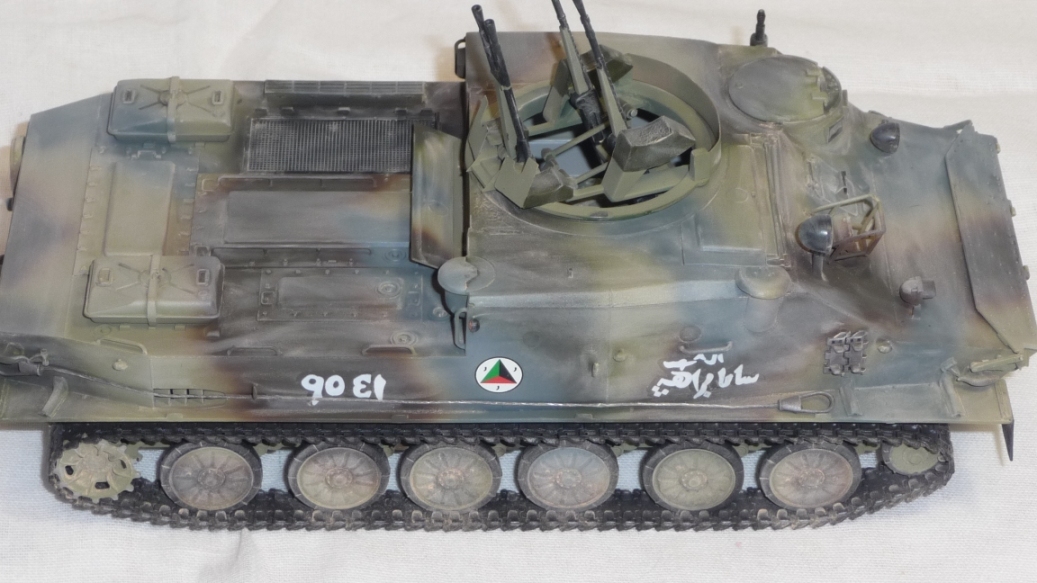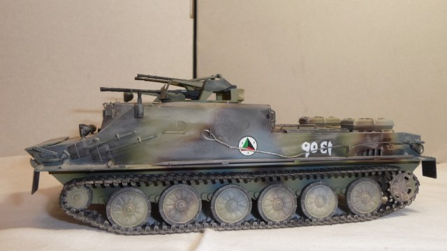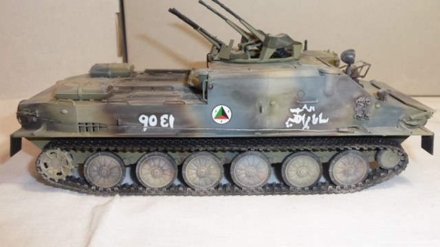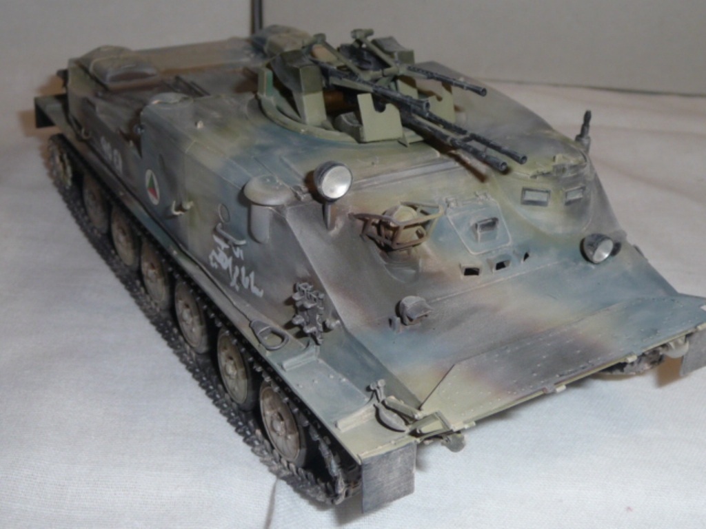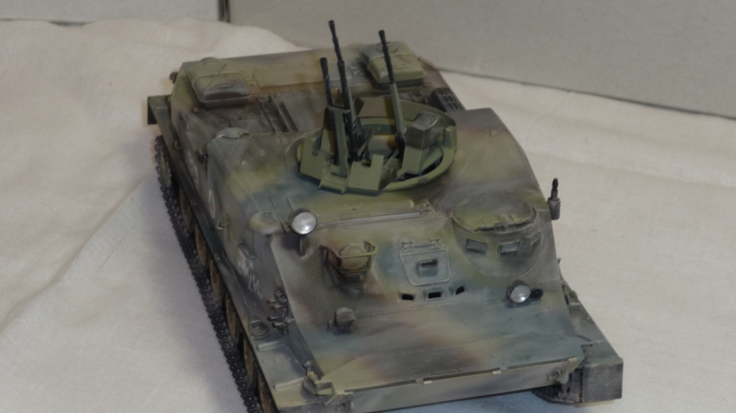 Добрый вечер, камрады! Трумпетр выпустил новинку - БТР-50. Однако он в "базовой" комплектации как-то не смотриться. Как Без оружия как трактор геологов. Поэтому решил перестроить его в ЗТПУ-4. ЗТПУ-4 как известно это счетверенненая зенитная установка КПВТ. Ее я в полном сборе взял из УМ-вского БТР-152 и вставил его на погон БТР-50. Встала как родная. Чтобы было наглядно взял фото ЗПТУ-4 из кубинского музея БТТ. Правда там она без пулеметов, только лафеты. Добавил фары и ктотфоты Эльф. мывка акварель, пыль- пудра.
