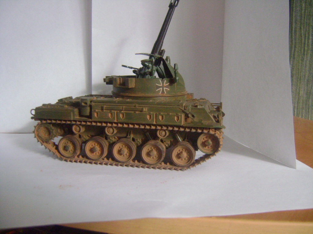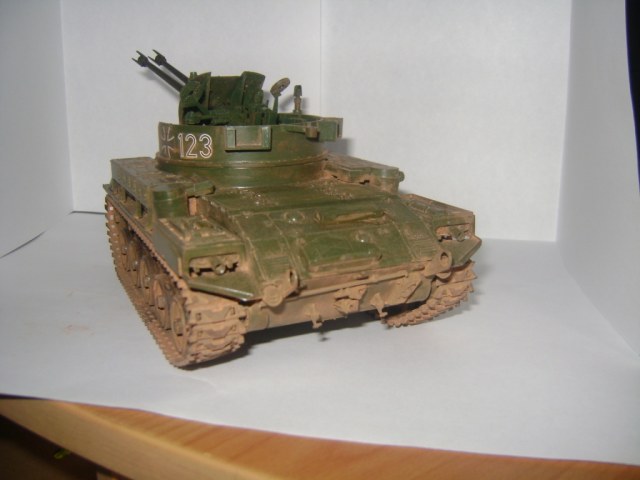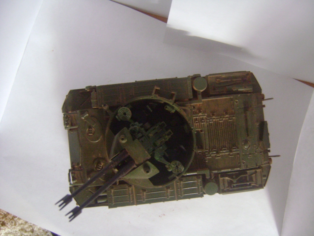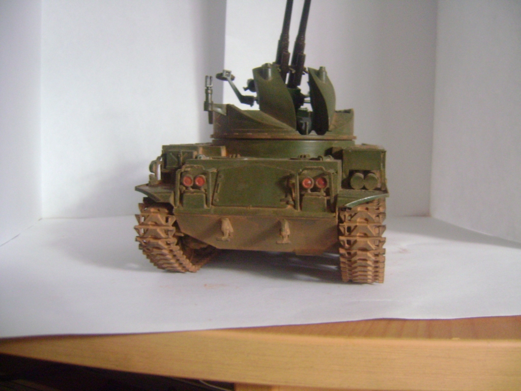 Доброго времени суток каропчане. Я решил подработать свою зенитку в плане запыления и покраски. Перекрасил с тамиевского акрила на акановский(перекрашивал 3 раза), пигменты смыл всё и наложил новый слой более тонкий, гусеницы менять не стал т. к. при первой попытке это сделать у зенитки слетела ходовая звёздочка и дальше рисковать не стал. Работа заняла около 2ух месяцев.