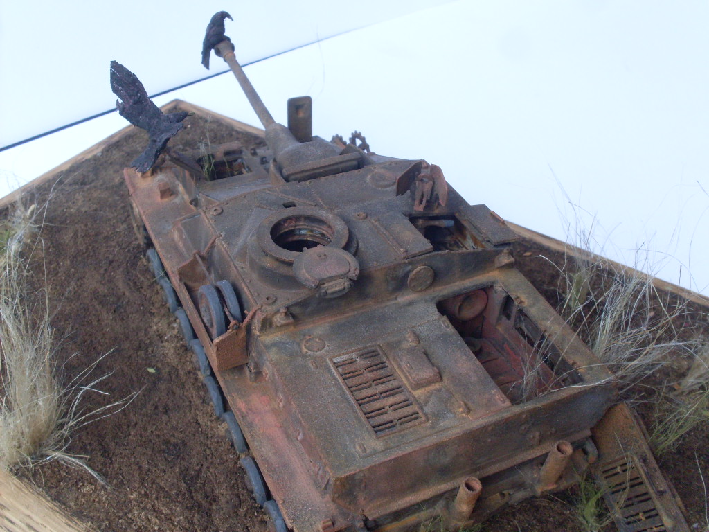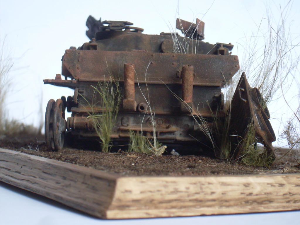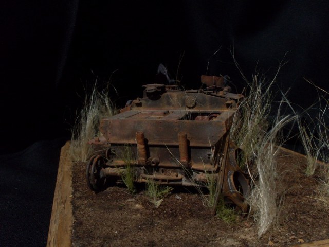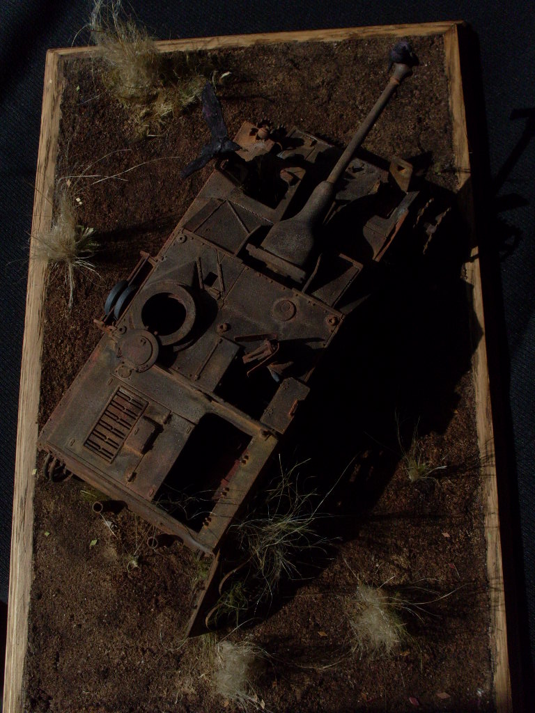 Исполнение горелого, ржавого металла - выше всяких похвал. Нутрянка достойно просматривается. Трава из Штуга уже попёрла... Видать, уже года три ржавеет. А трава на виньетке - фиговатая.