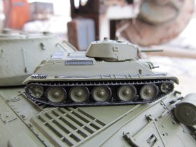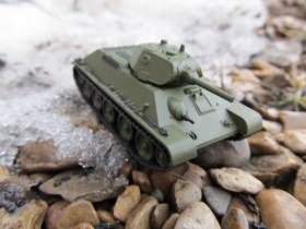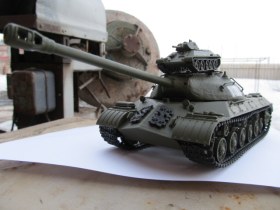 Вот такой вот получился клоп. Красил кистью. Сфоткал его с трюмповским ИС-3М чтобы подчеркнуть размер. Всем кто любит собирать этих малышей советую попробовать эту модель. Не знаю из чего сделать фары так что если кто знает пишите в комментариях.