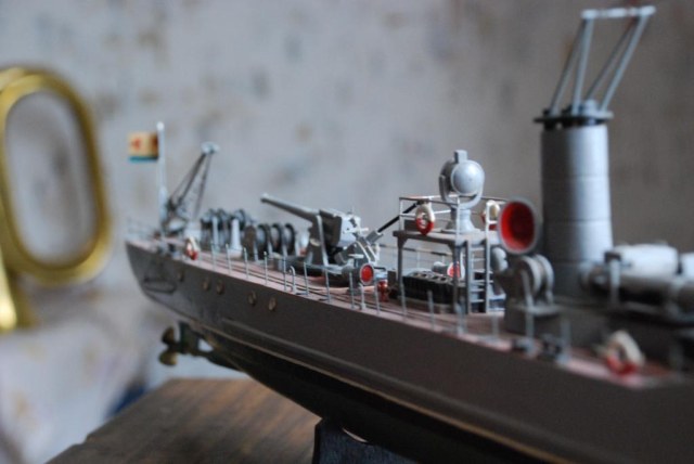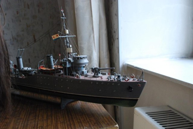 Данная модель сторожевого корабля строилась 2 года заслуженным моделистом - Курочкиным Владимиром из города Ногинска М/О, для военно-морского музея РФ… Всё сделано его руками по чертежам и из дерева…. Выставляю на обозрение в КАРОПКУ, в память о прекрасном судомоделисте – коих в России не много.