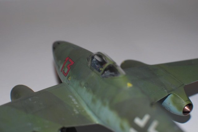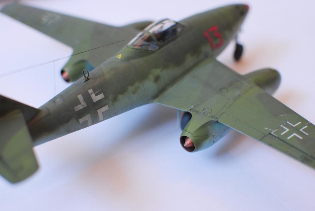 Модель понравилась! А вот фото не очень...Цвета вроде те. Хотя у немцев действительно в конце войны были краски разные немного, но сильно схожие друг с другом. RLM 81 и RLM 82 у них были 2х оттенков с небольшим отличием. А каким оттенком красить a или b - никто не подскажет. Замечаний больших нет. Немного по цвету ниш -да, в конце войны у Ме-262 основная ниша не красилась обычно(цвет металла), а передня всё-таки грунтовалась RLM 02. Хотя может быть как у вас. Необычно смотрится цвет лопаток турбины, хотя в музее есть такое фото. Возможно, какое-то специальное покрытие(гальваника?) Удачи!