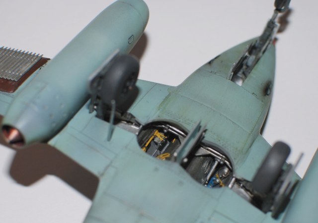 Из доработок – ниши (блин, много из того, что сделано просто не видно), шланги на колесах и стойках шасси, антенна – капроновая нить, пулемёты – иглы.